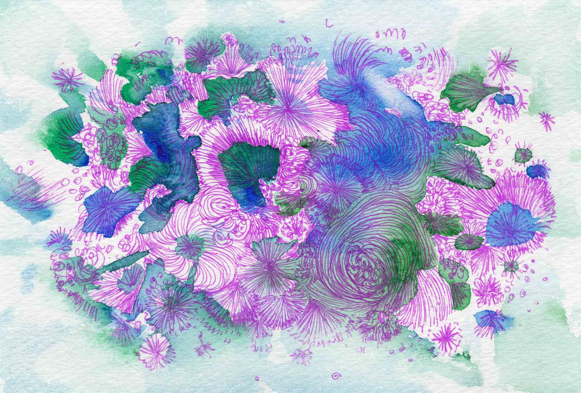 Flowers [#SS16DW042] 2016, Watercolor and Pen on Acid-free Paper, 3.9 x 5.8 in. / 100 x 148 mm