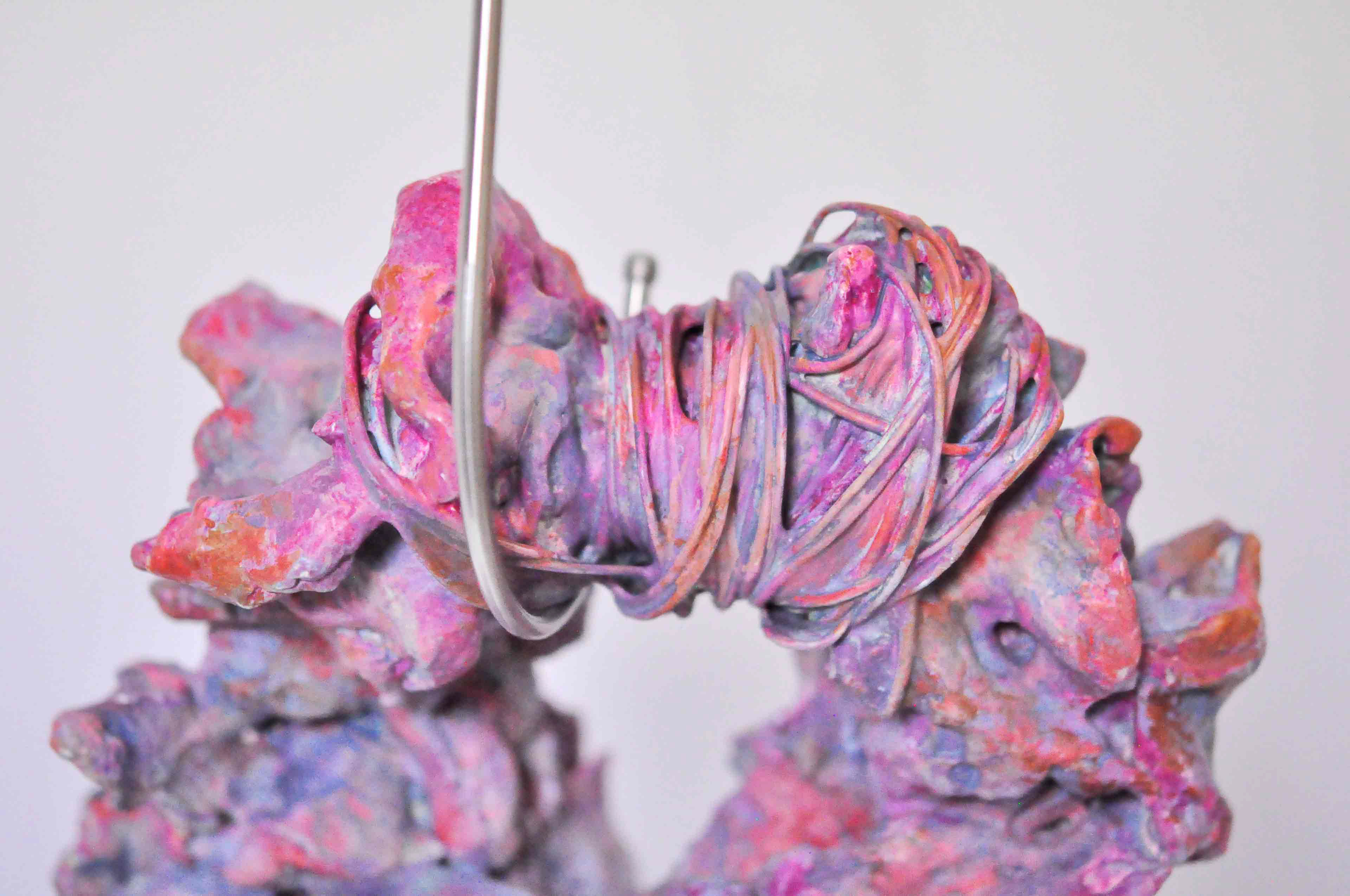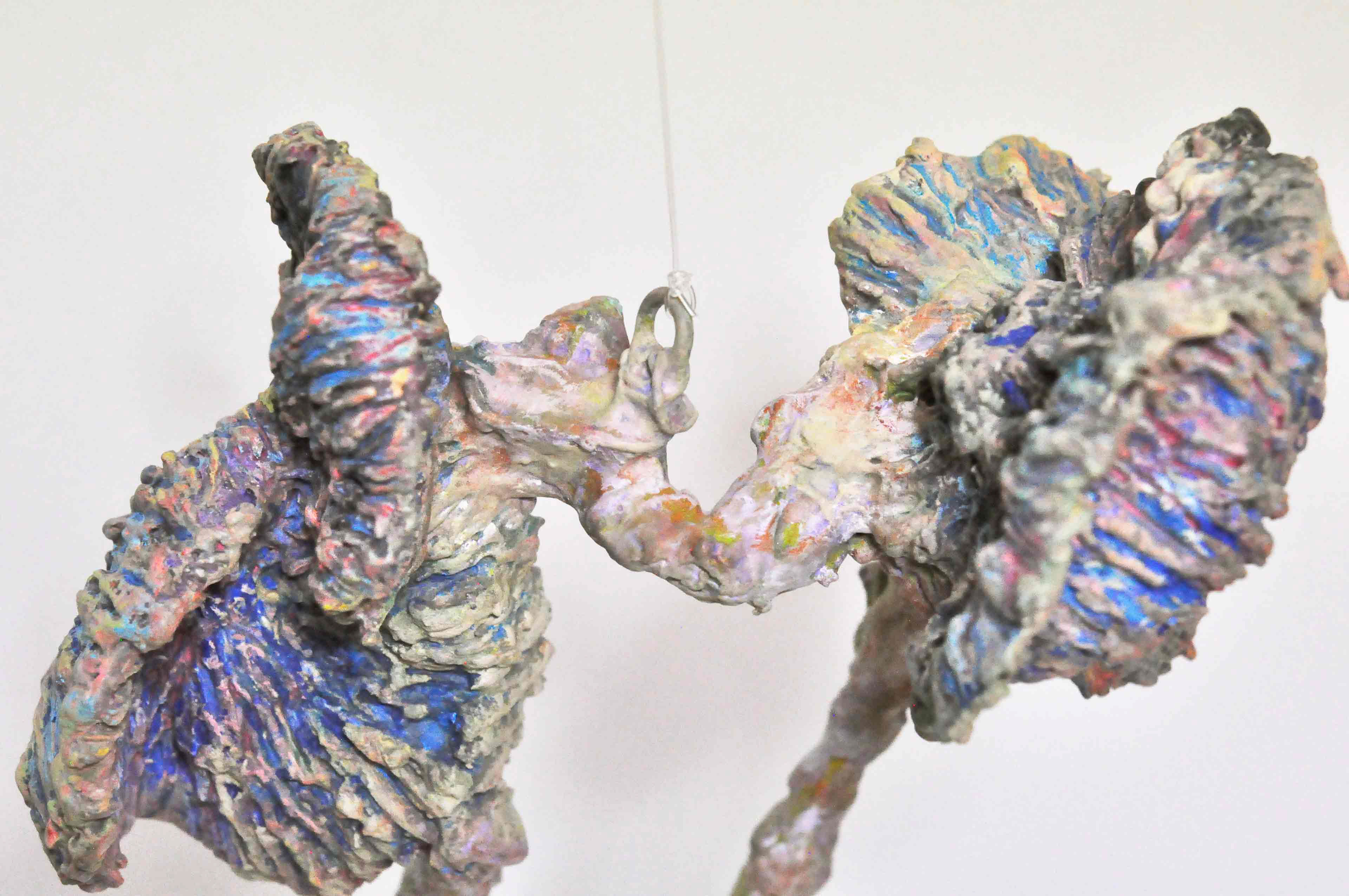 Dancer [#SS18SC001] 2018, Oil, Glue, and Steel Wire on Stone Powder Clay, 19.3 x 23.6 x 8.6 in. / 49 x 60 x 22 cm