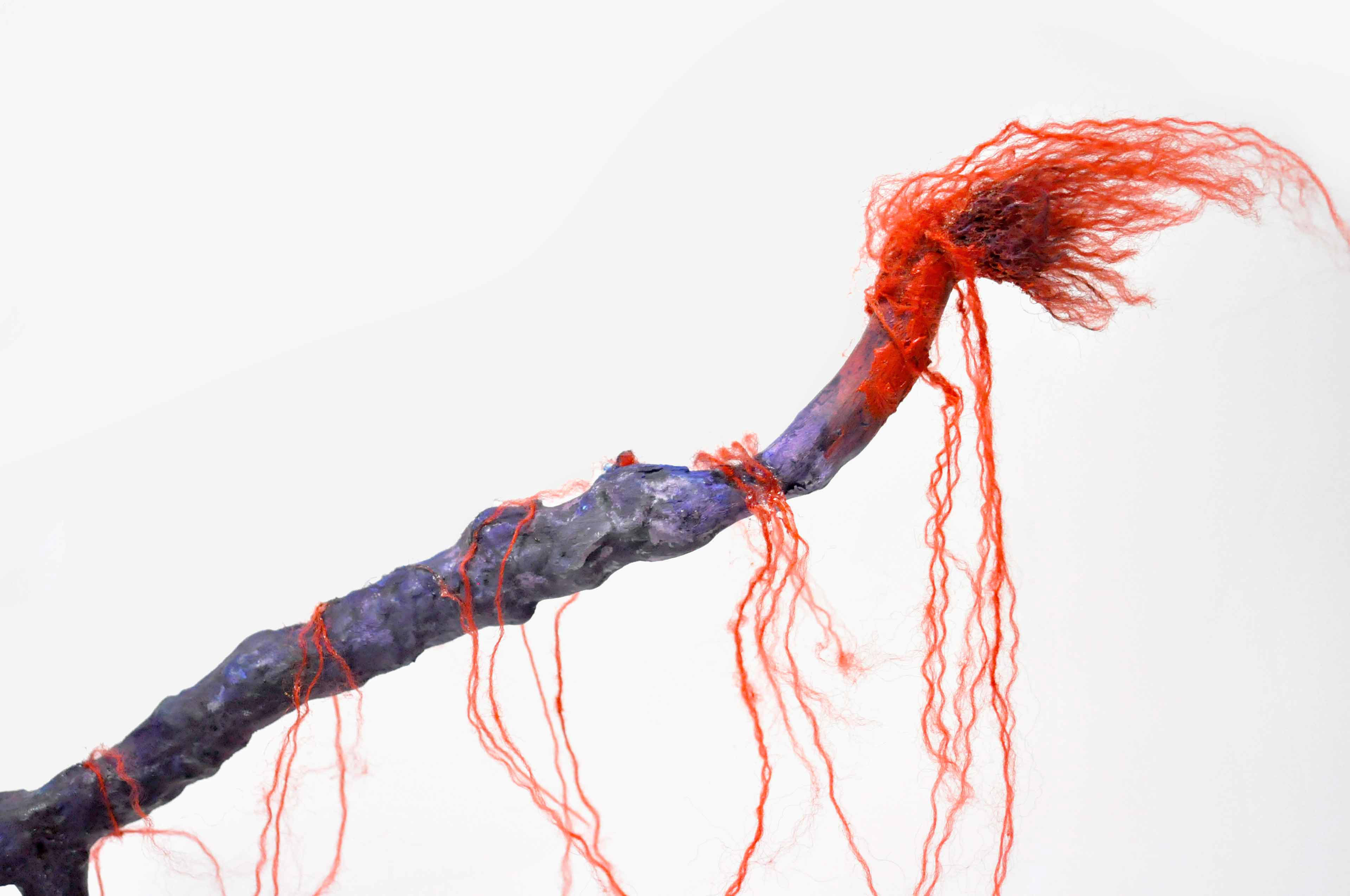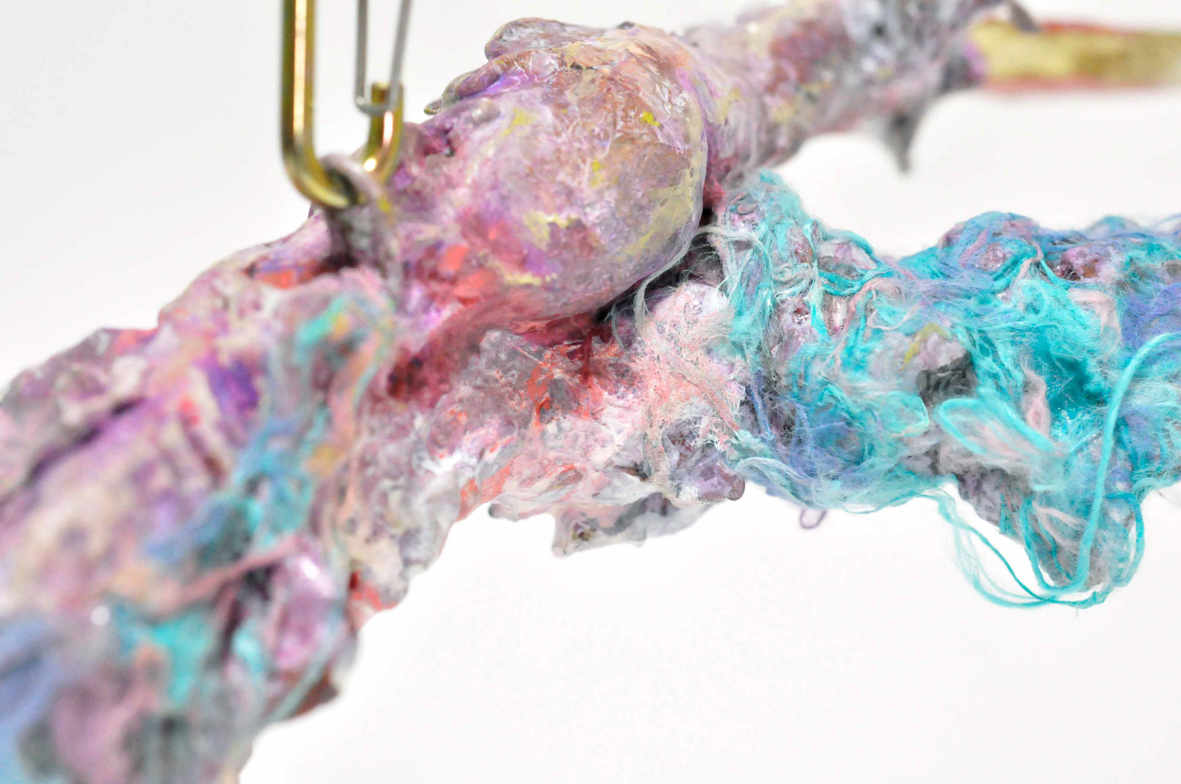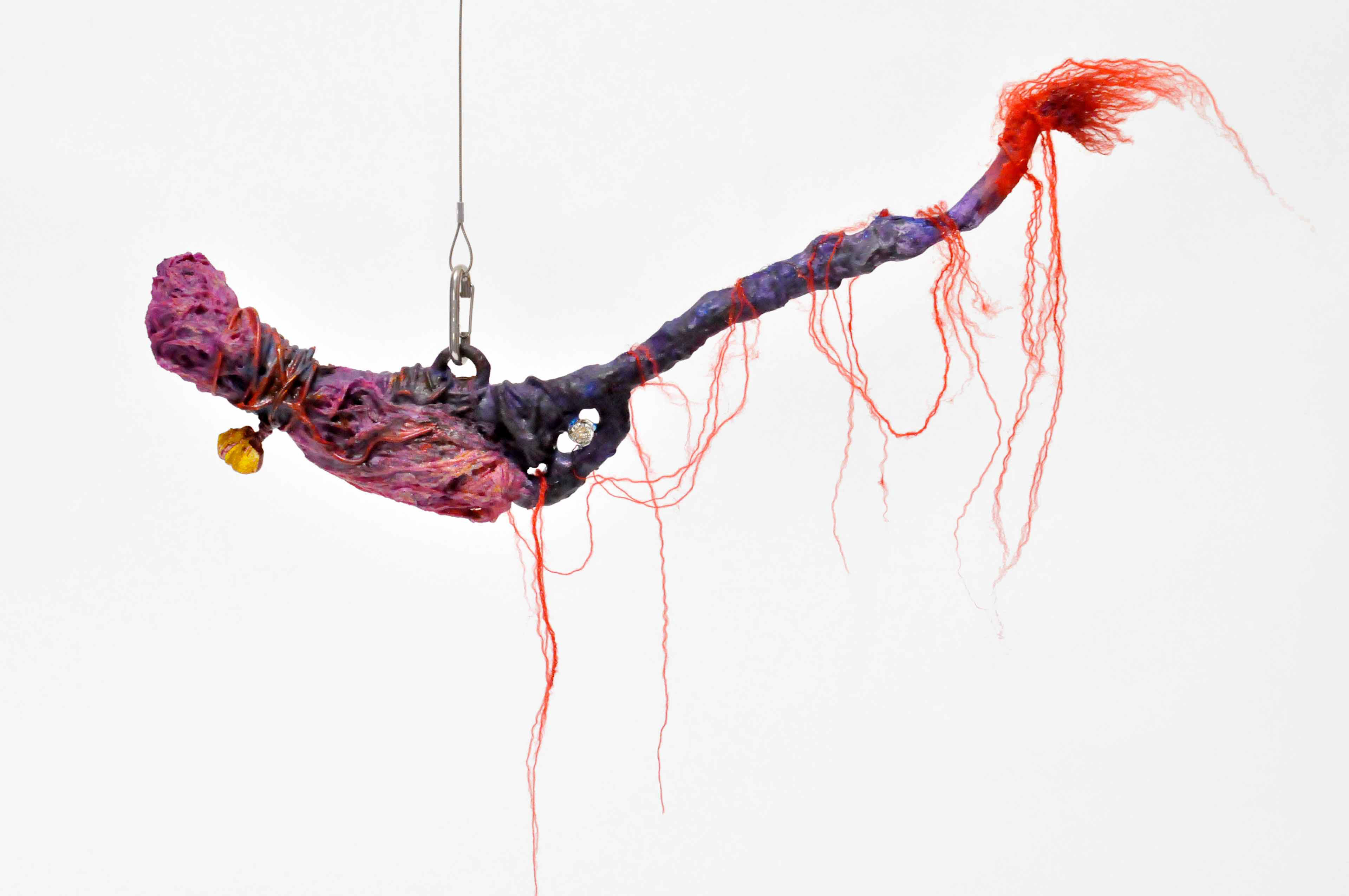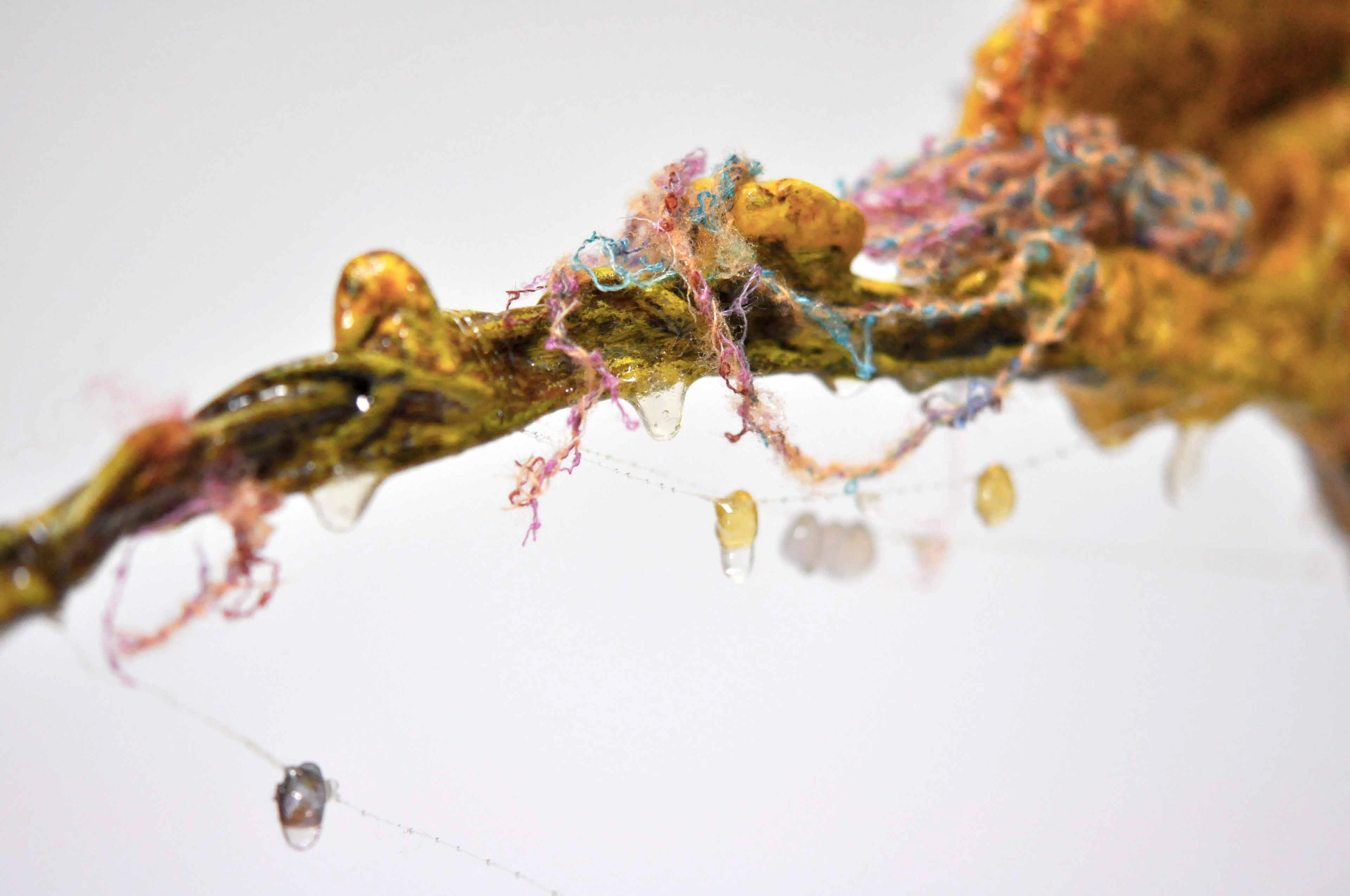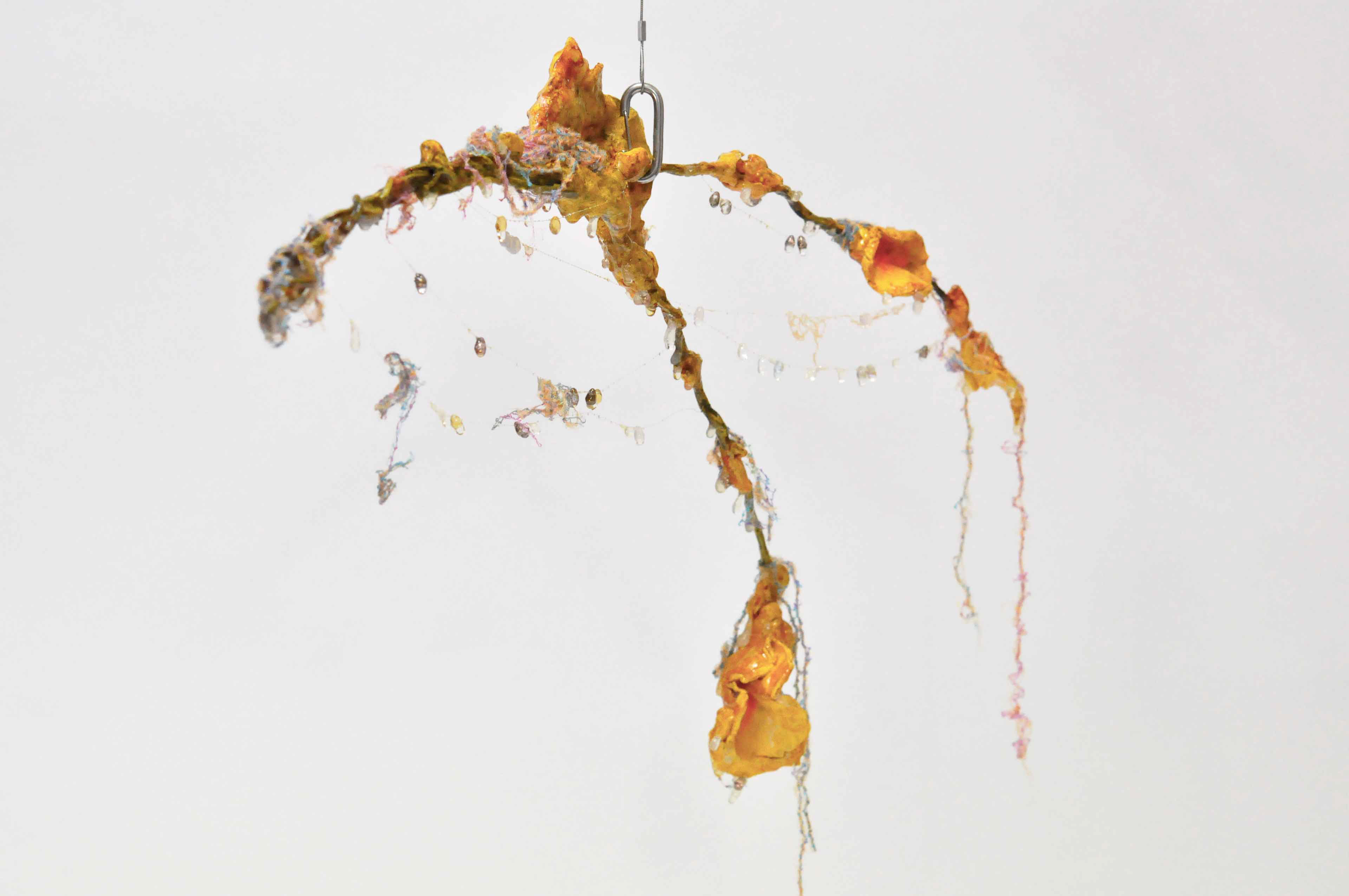 Branch [#SS21SC002] 2021, Oil, Glue, Resin, Yarn, Nylon Wire, Glass Beads, and Stone Powder Clay on Steel Wire, 13 x 20 x 2.5 in. / 32 x 50 x 6 cm