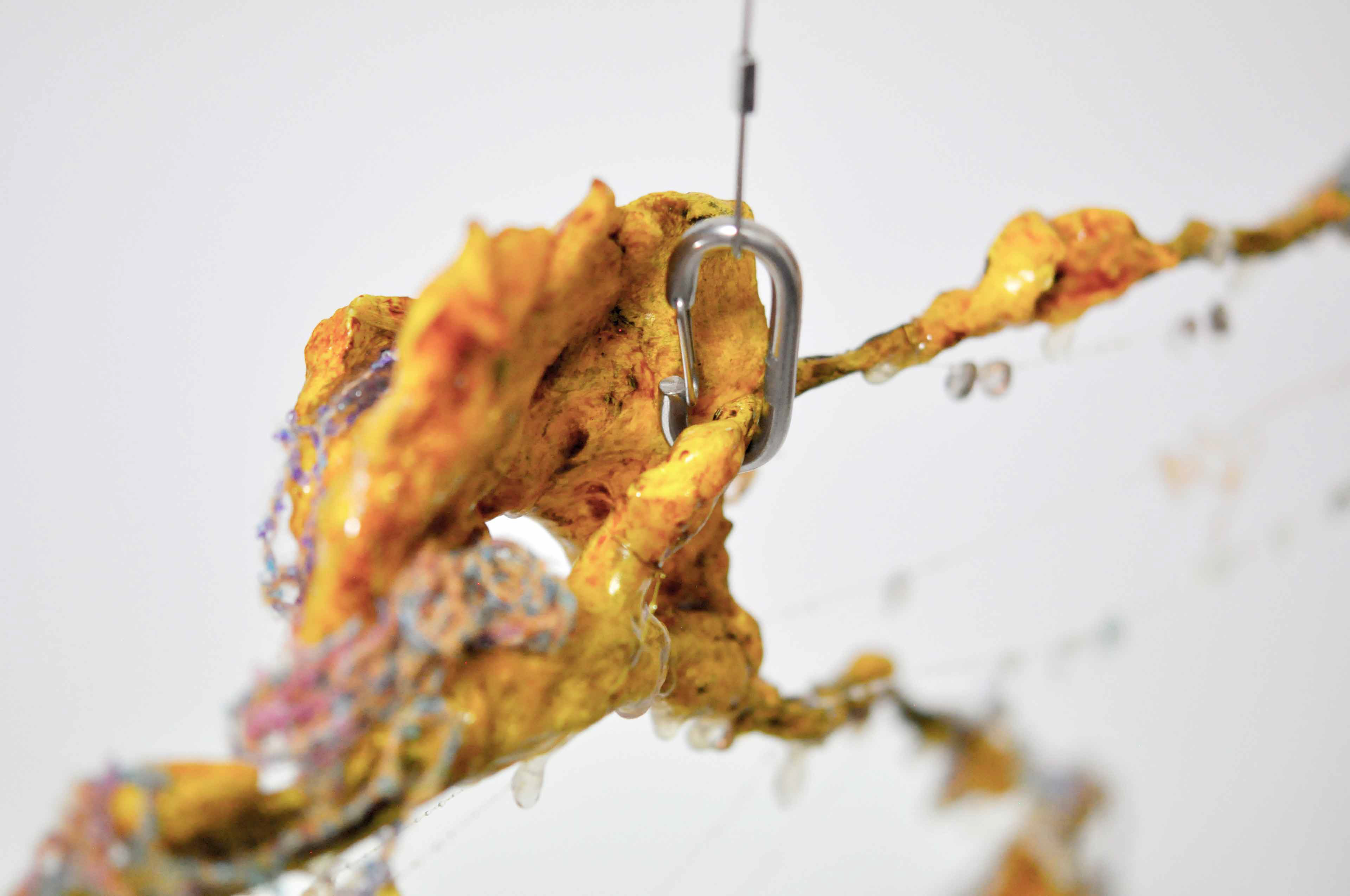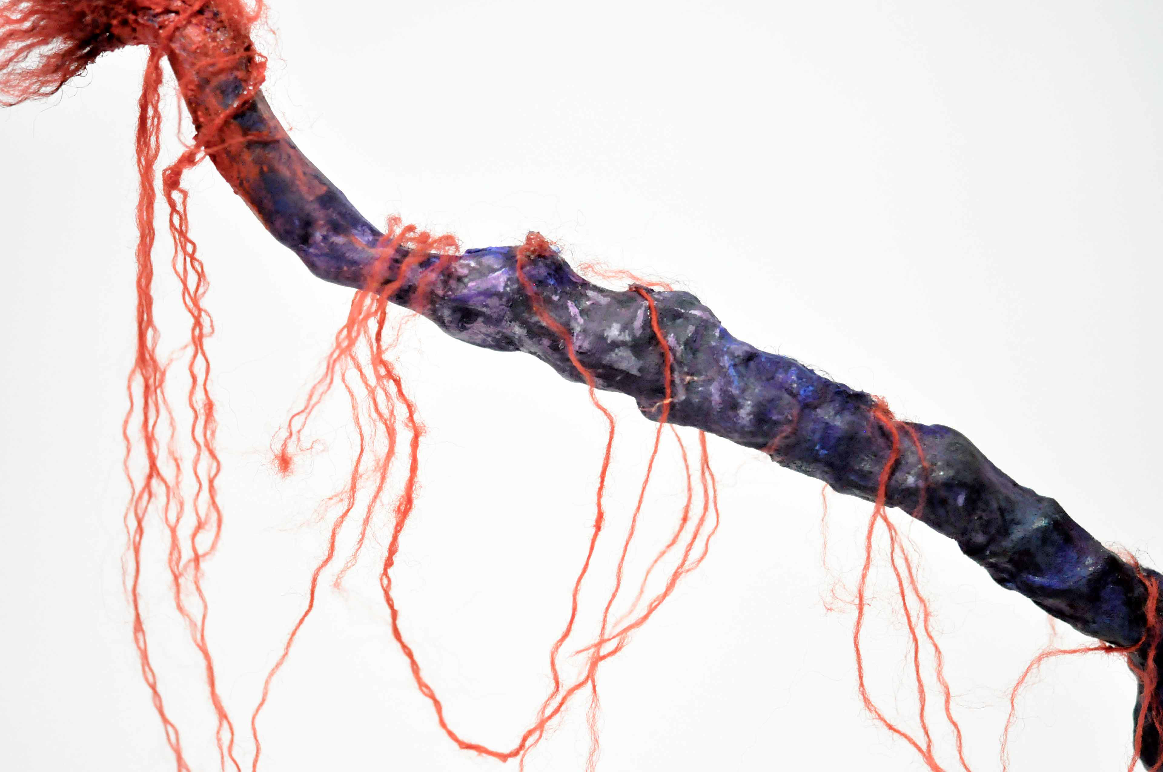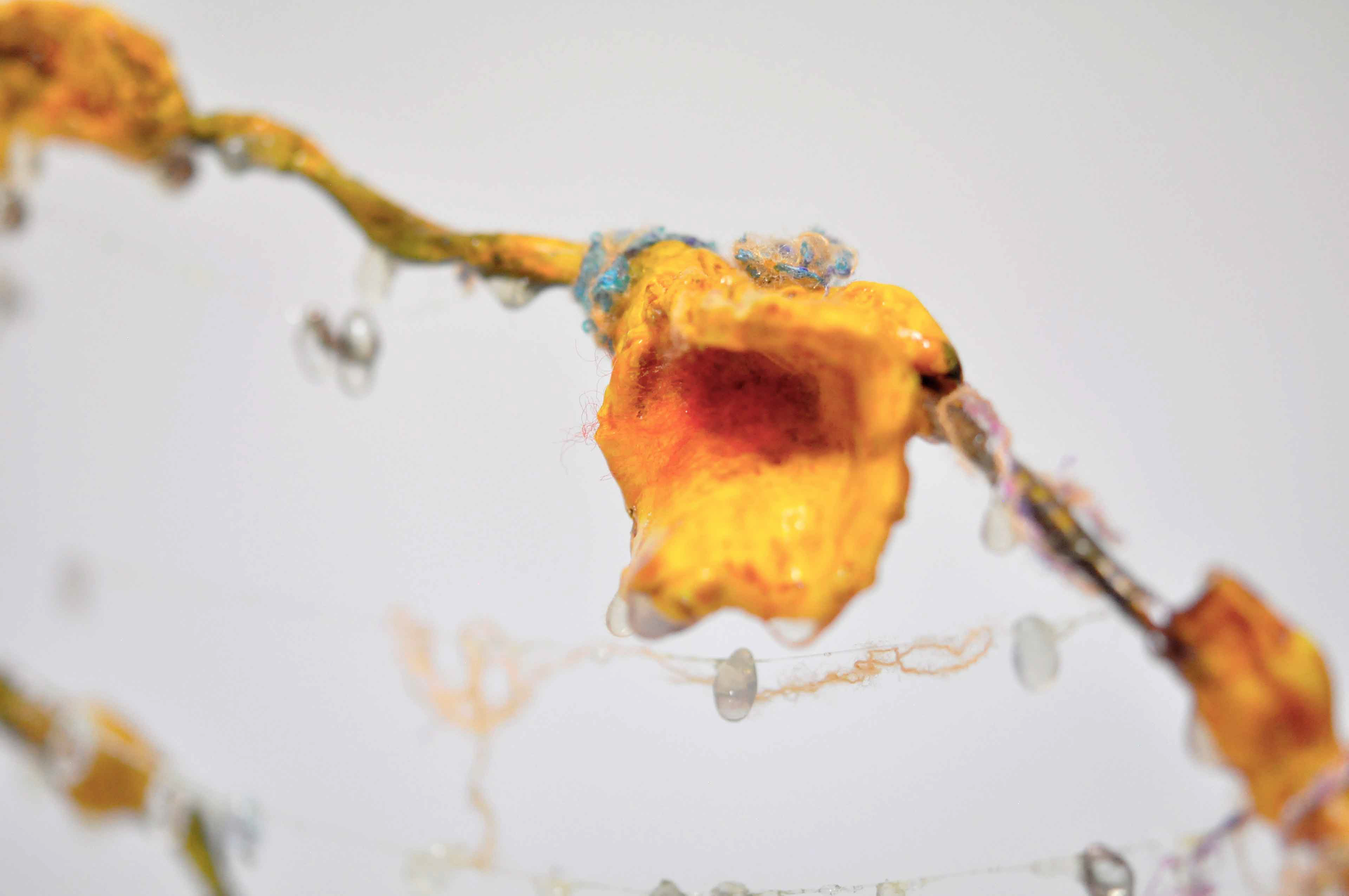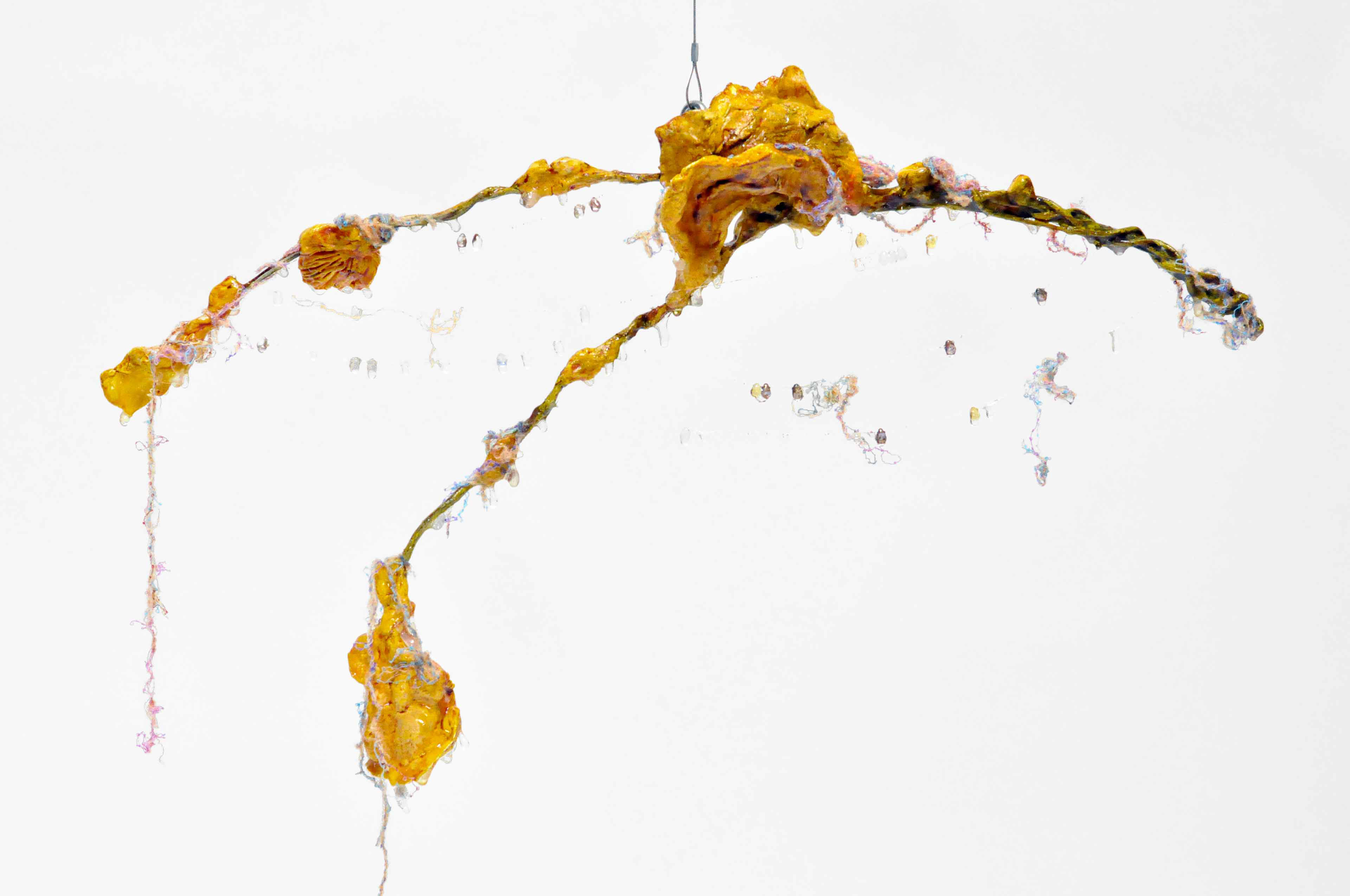 Branch [#SS21SC002] 2021, Oil, Glue, Resin, Yarn, Nylon Wire, Glass Beads, and Stone Powder Clay on Steel Wire, 13 x 20 x 2.5 in. / 32 x 50 x 6 cm