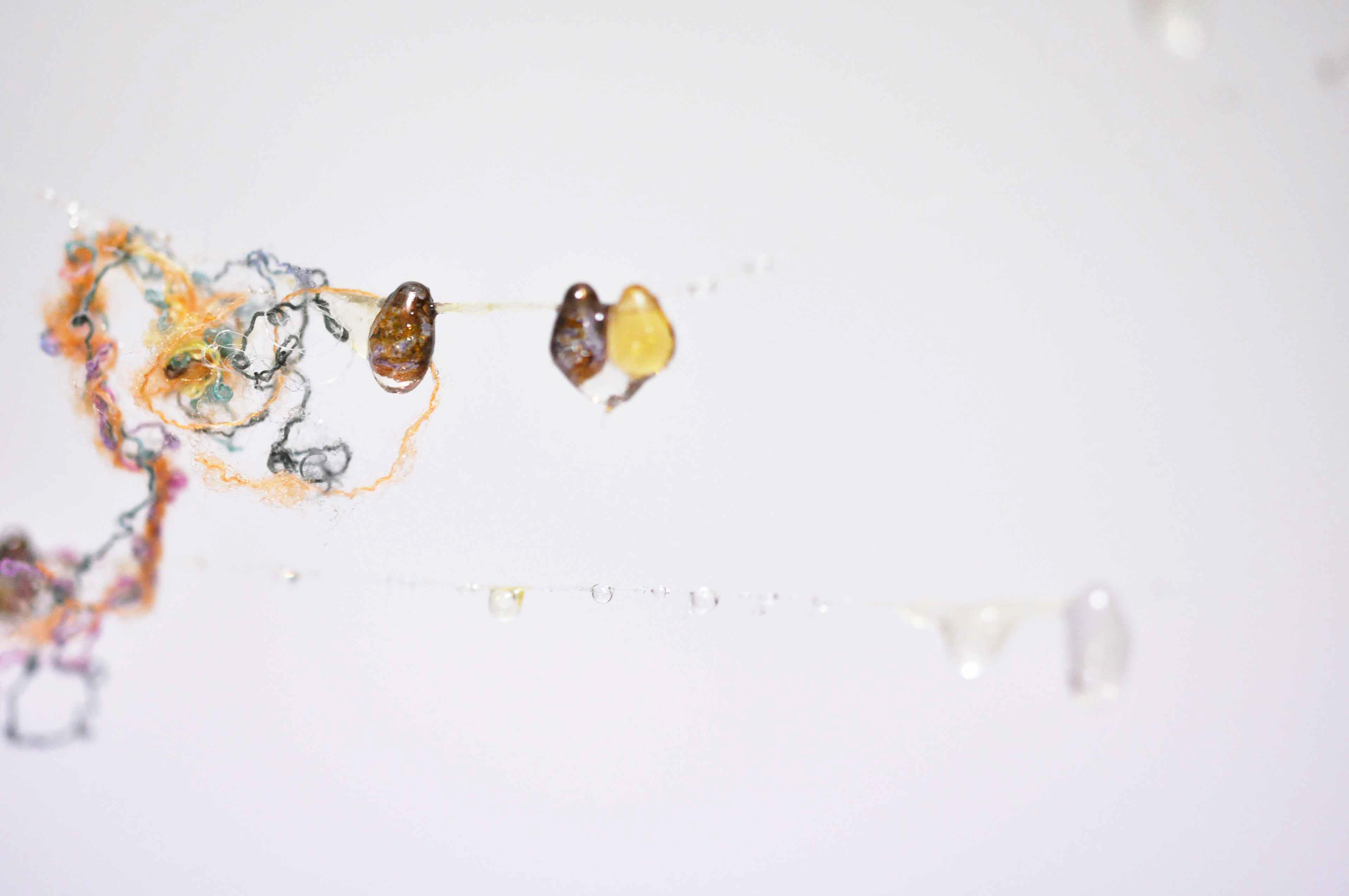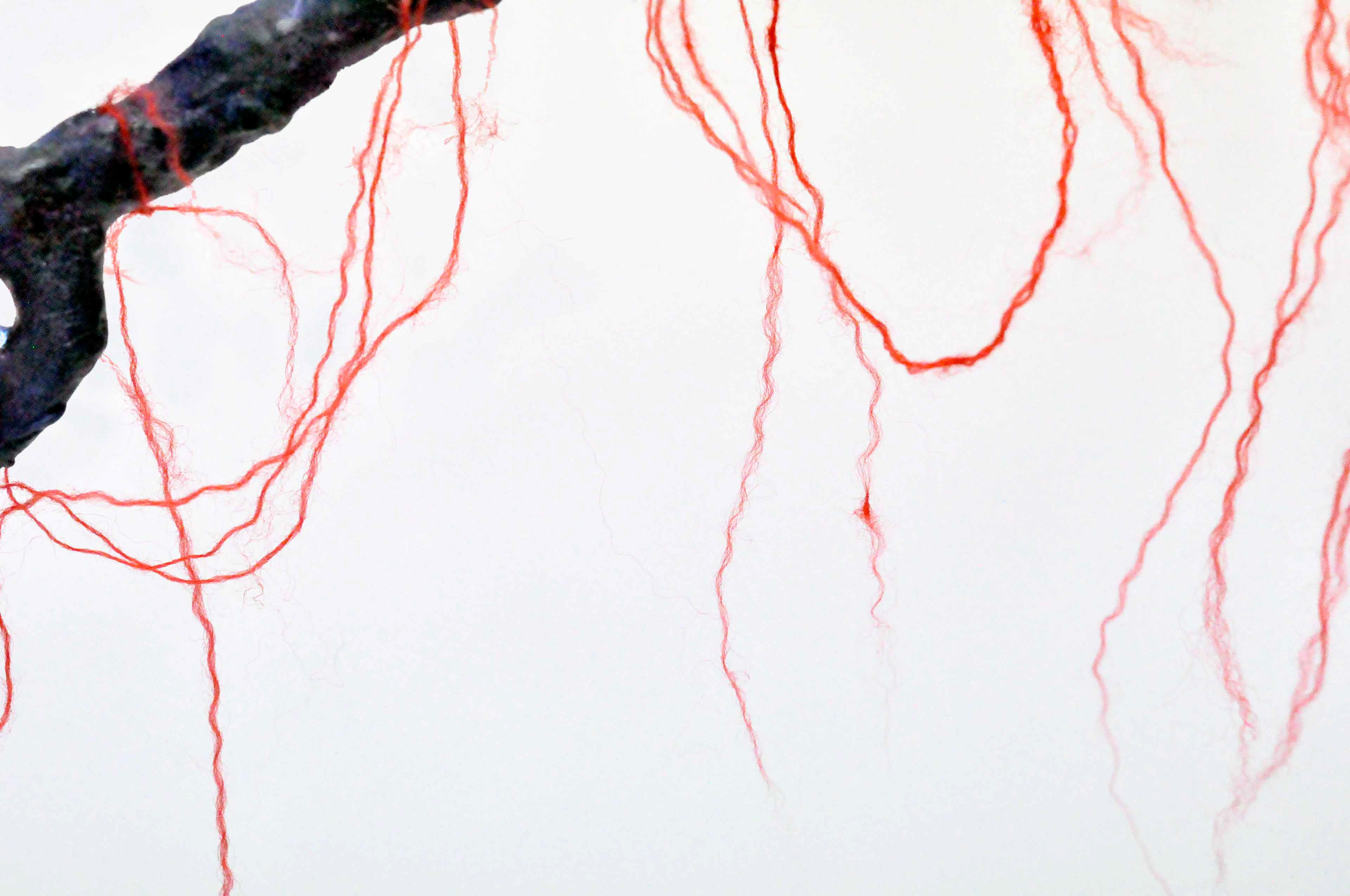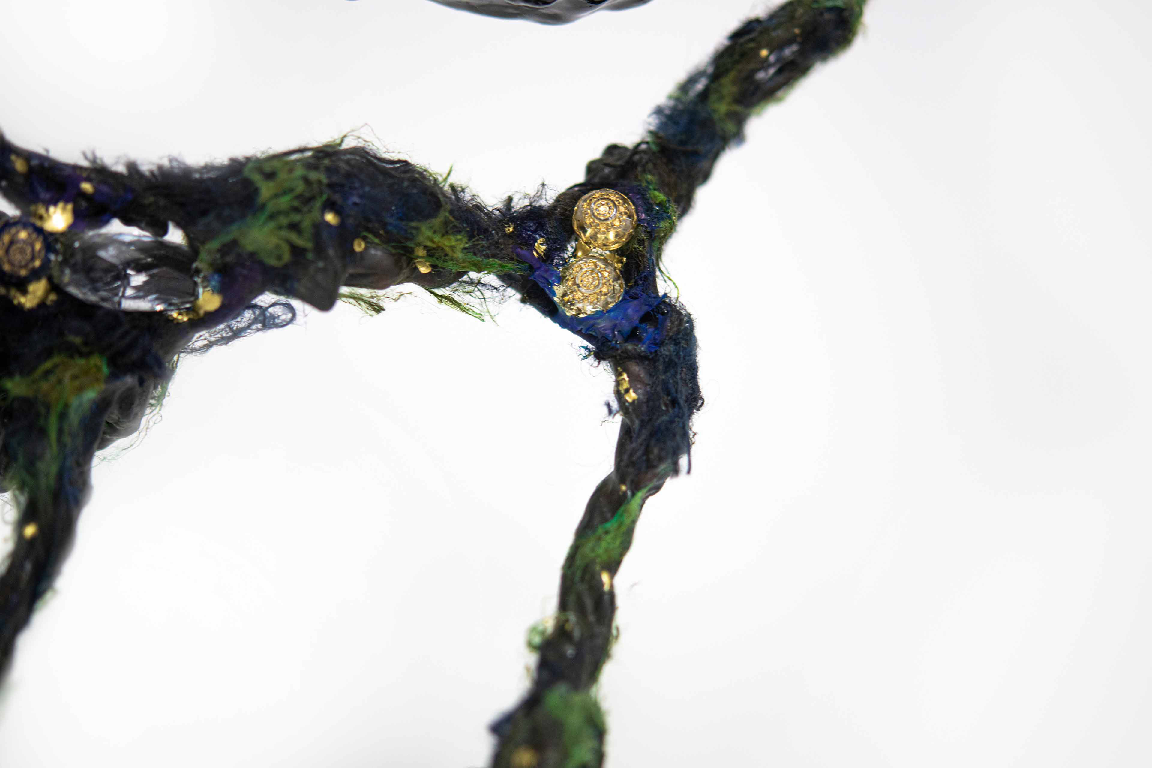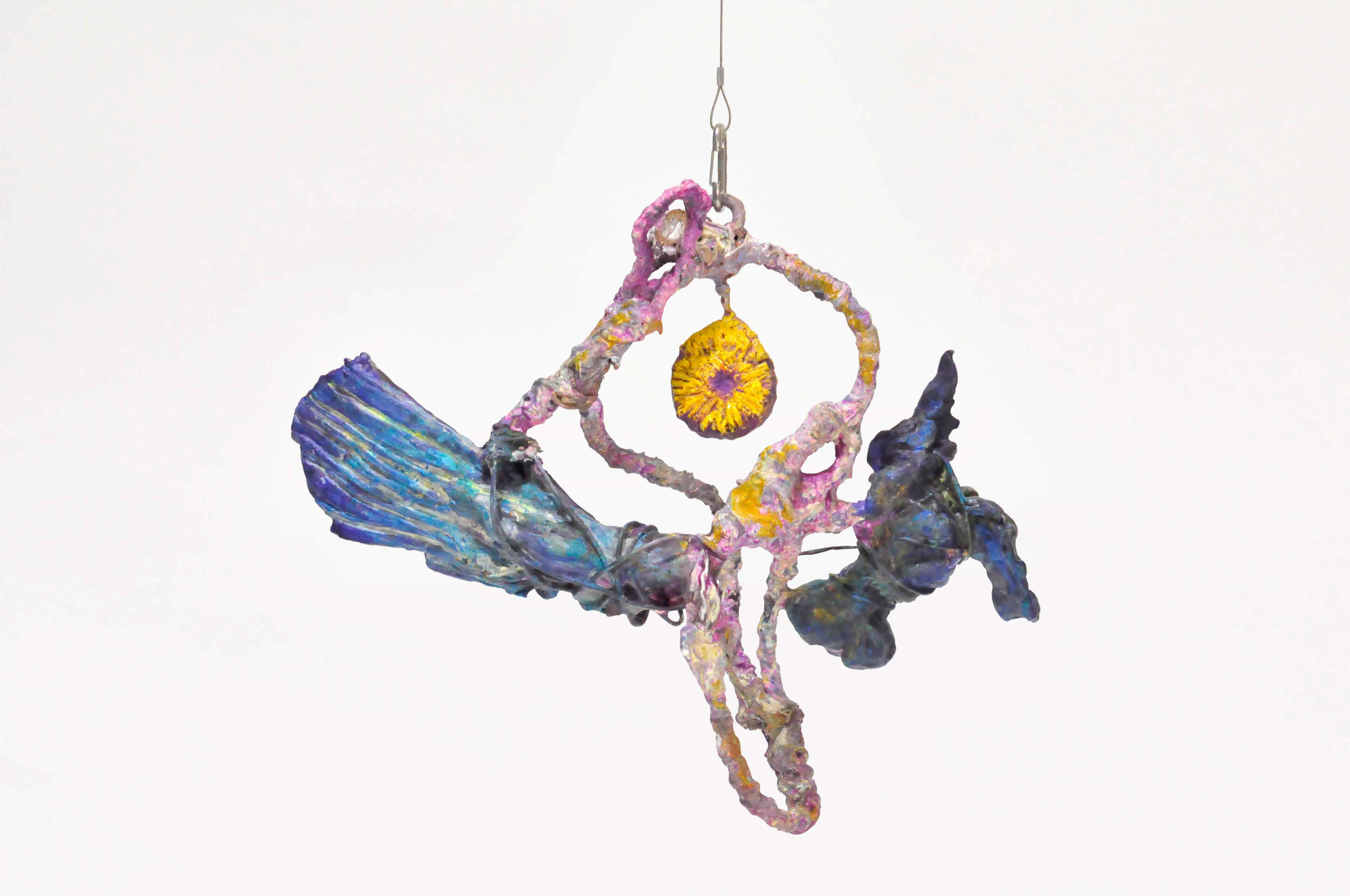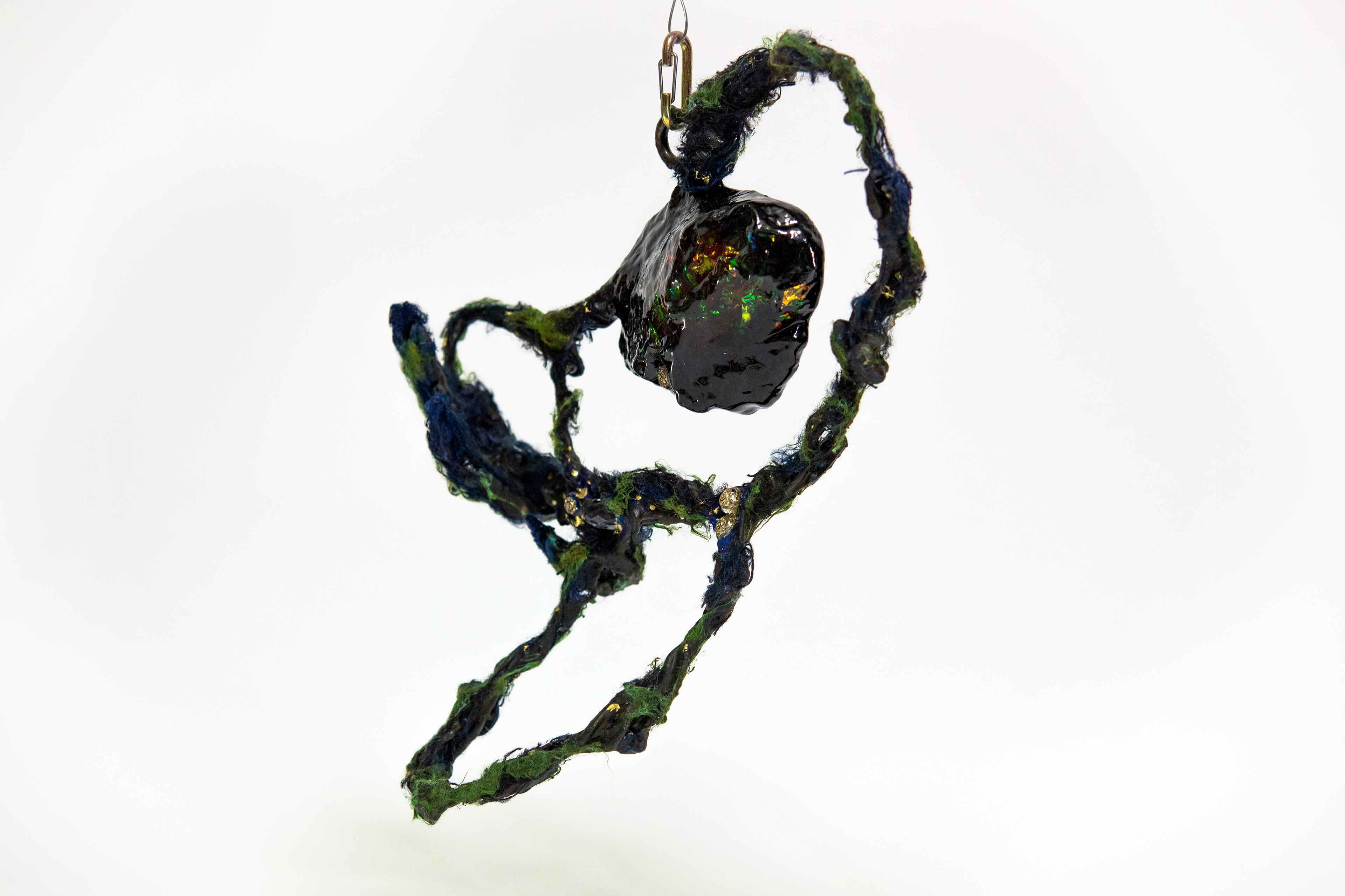 Branch [#SS21SC002] 2021, Oil, Glue, Resin, Yarn, Nylon Wire, Glass Beads, and Stone Powder Clay on Steel Wire, 13 x 20 x 2.5 in. / 32 x 50 x 6 cm
