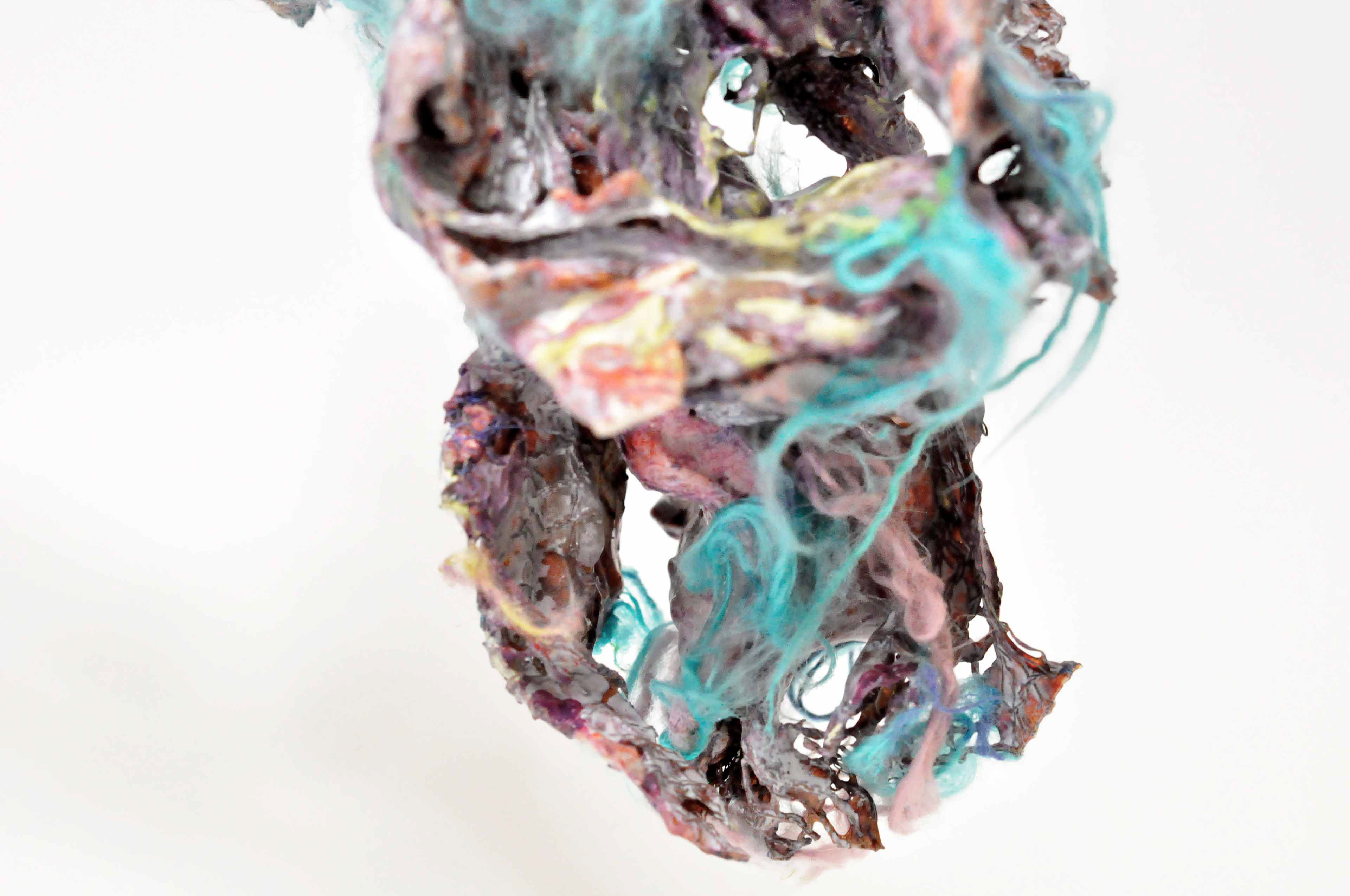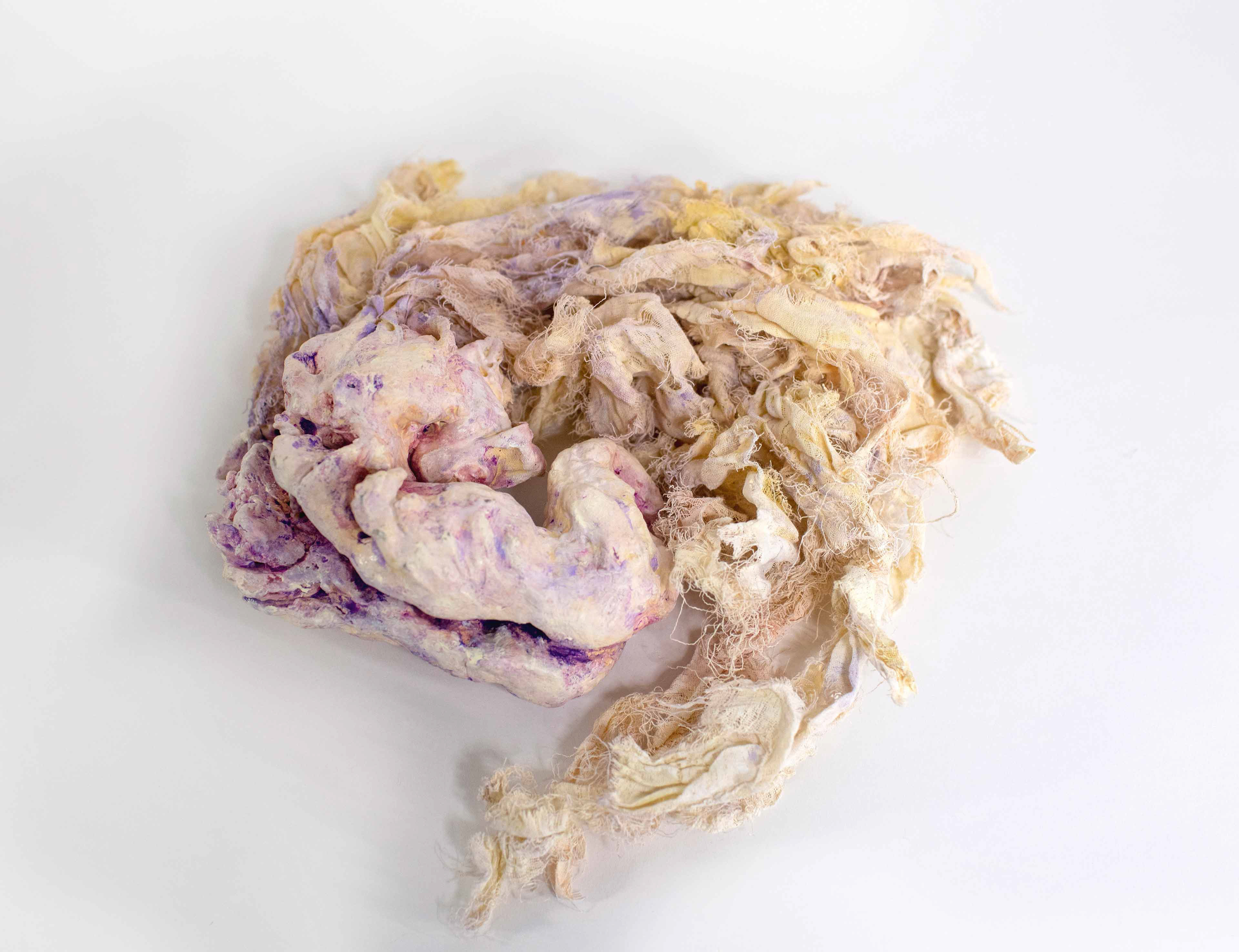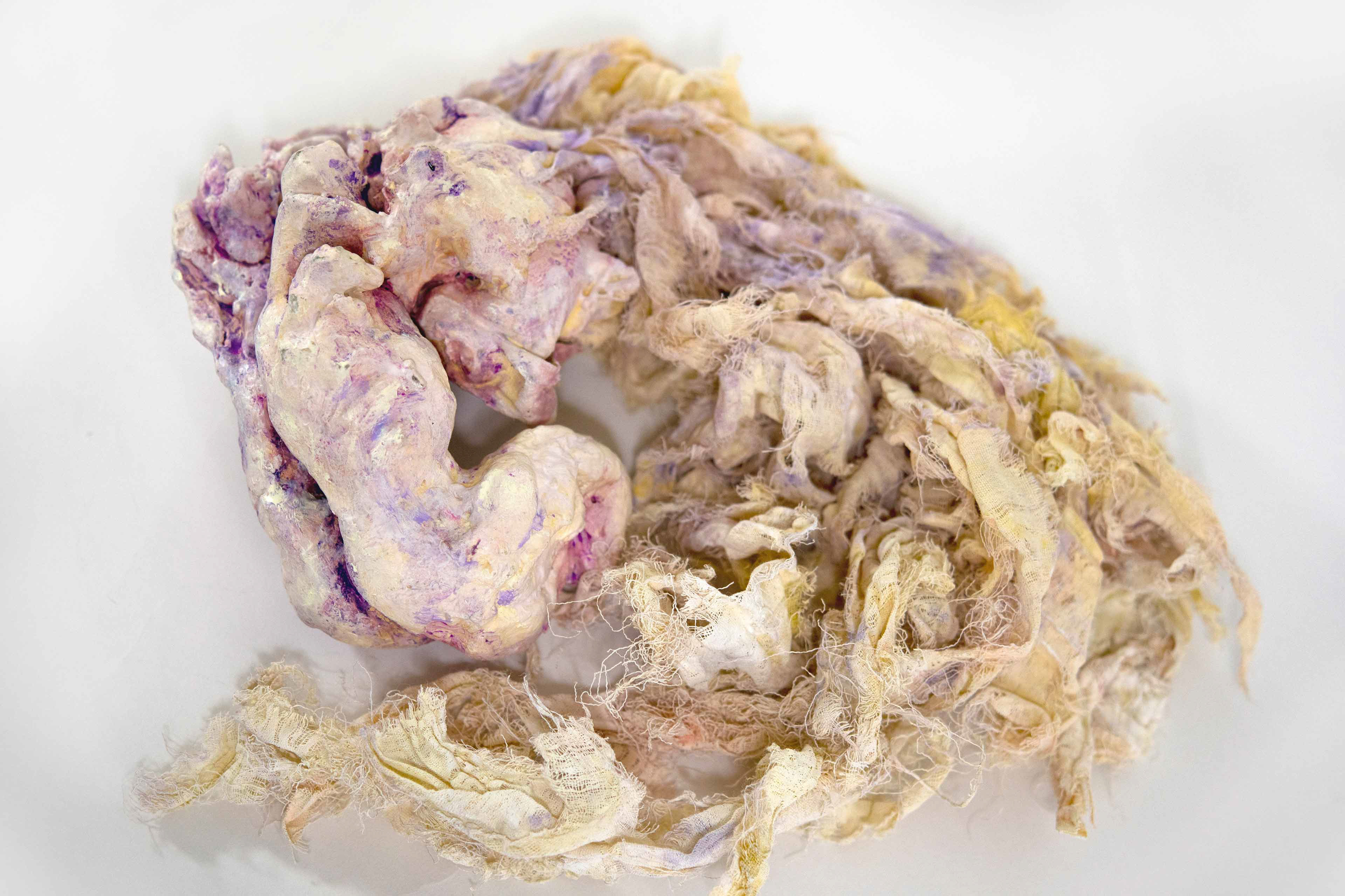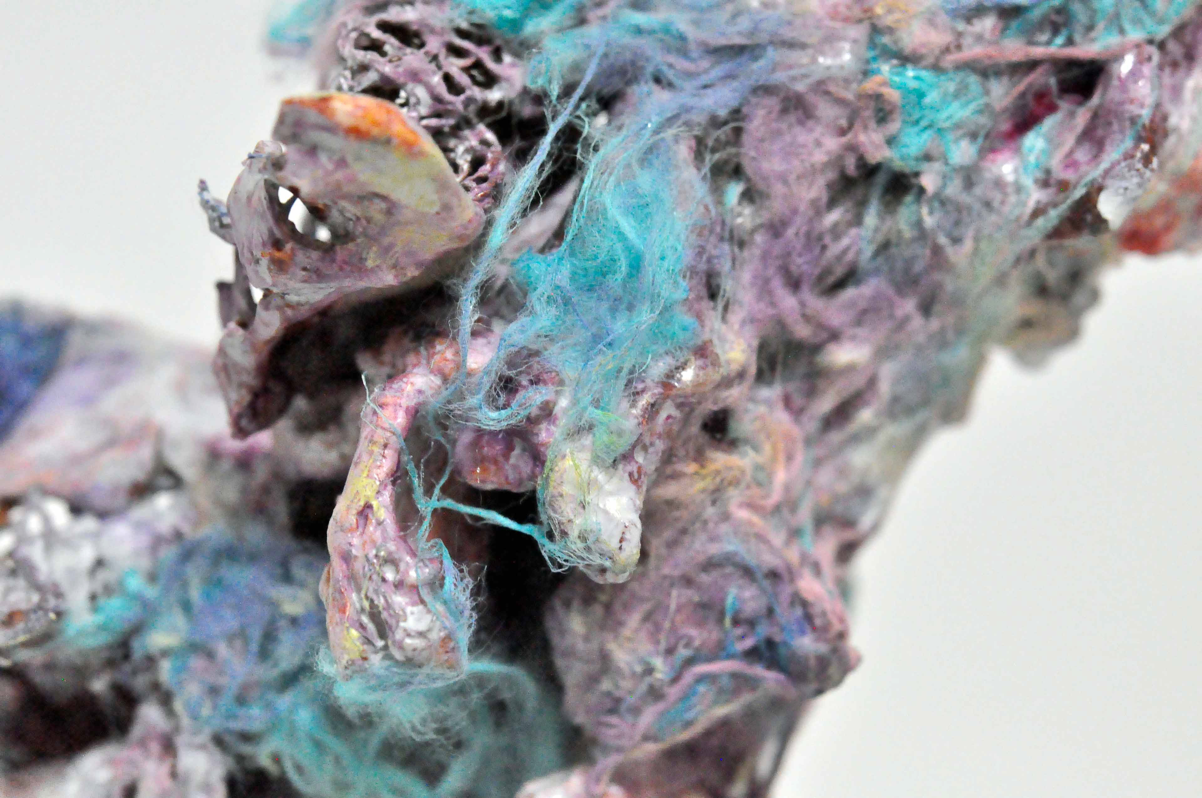 Untied [#SS21SC004] 2021, Oil, Glue, Yarn, Polyethylene Net, and Resin on Stone Powder Clay, 10 x 13.4 x 7.5 in. / 25 x 34 x 19 cm