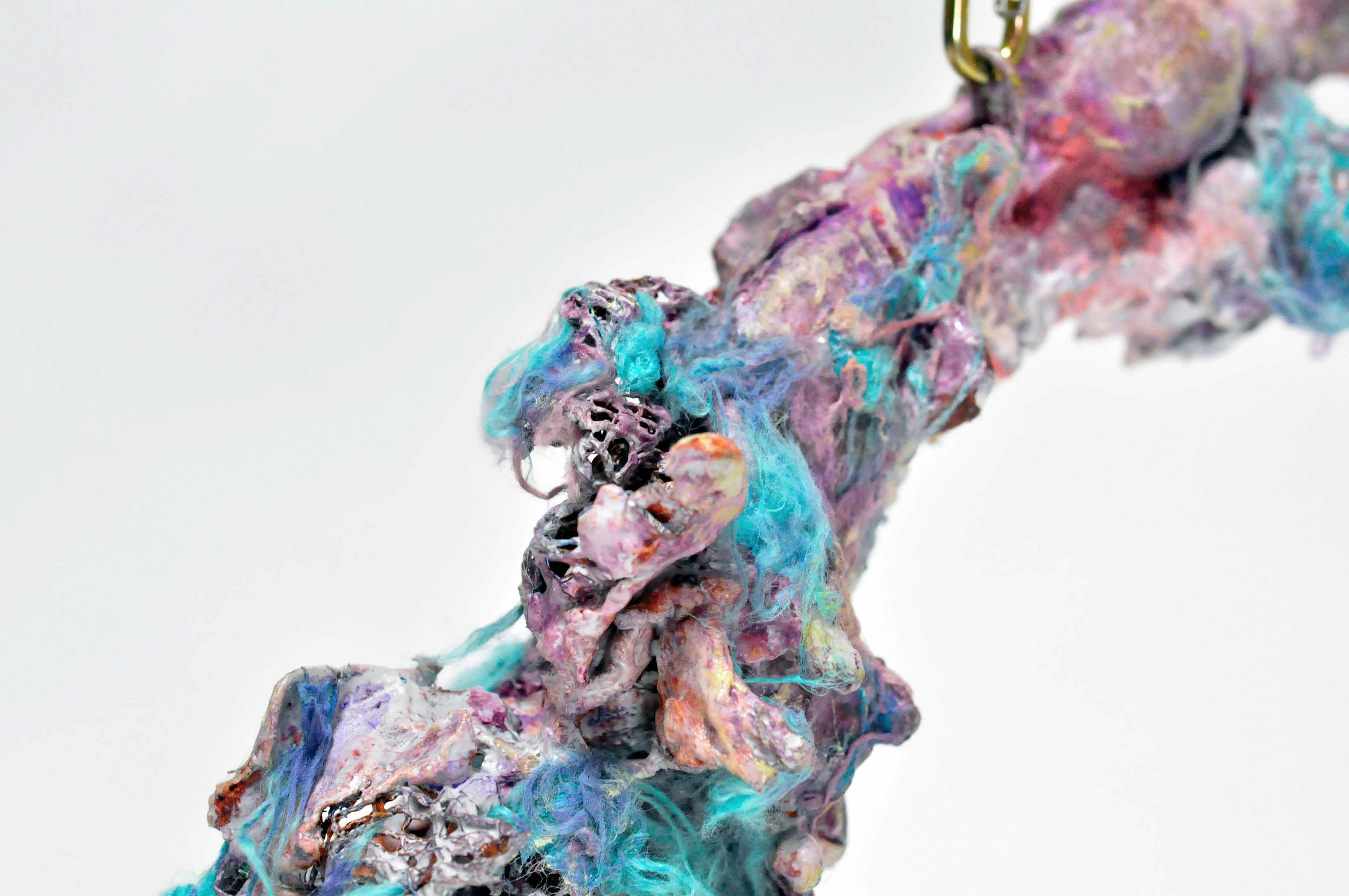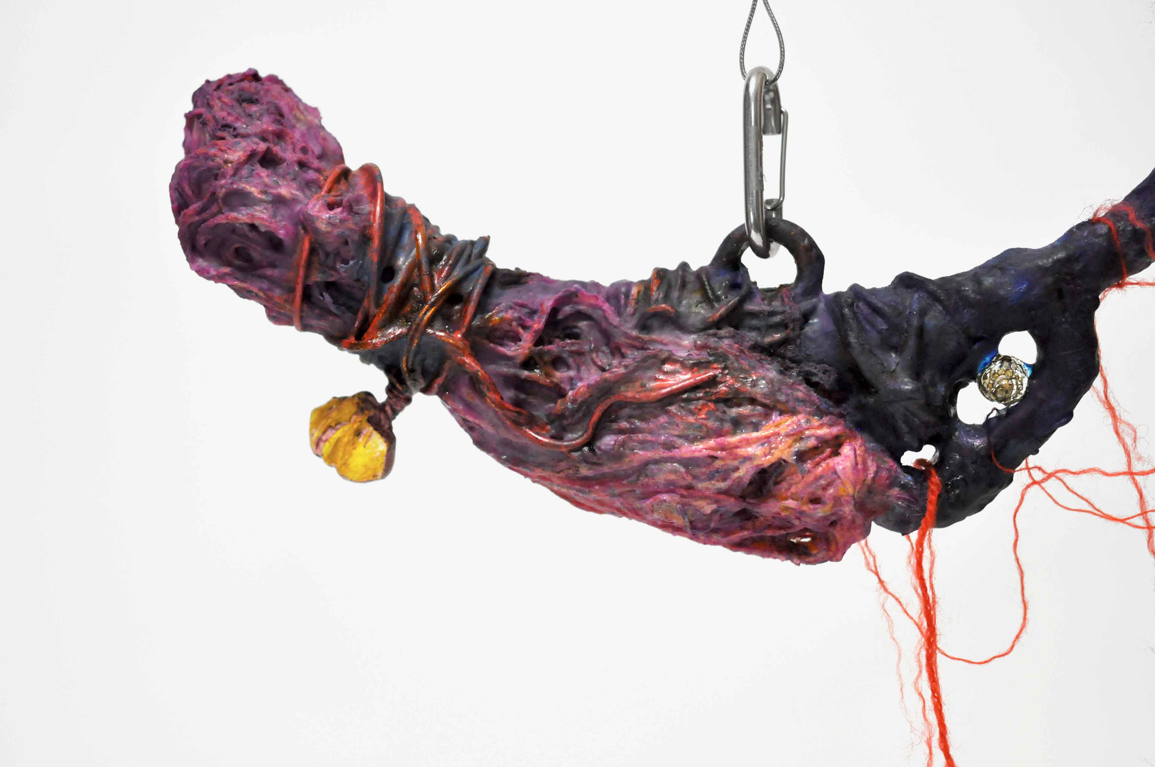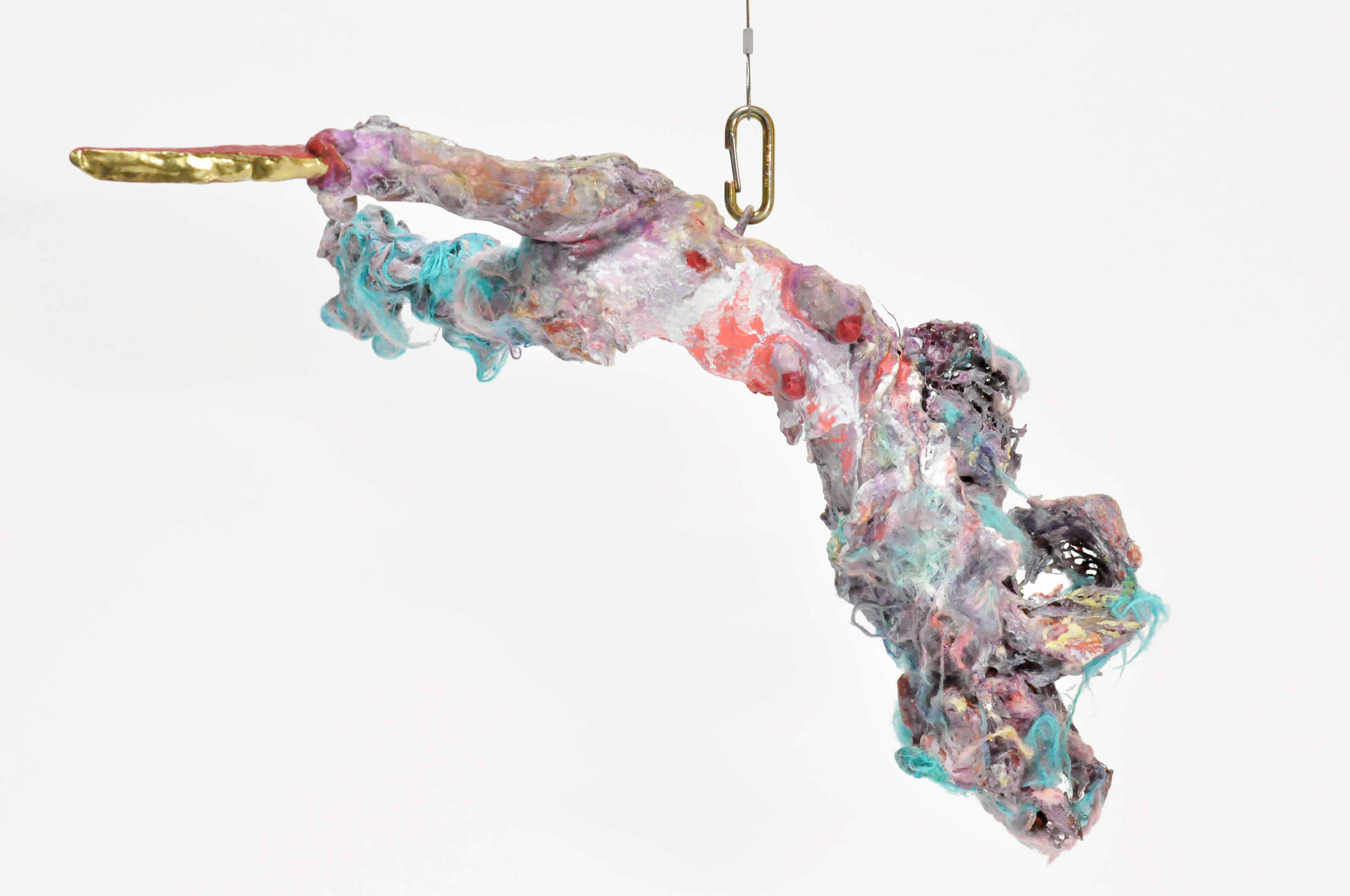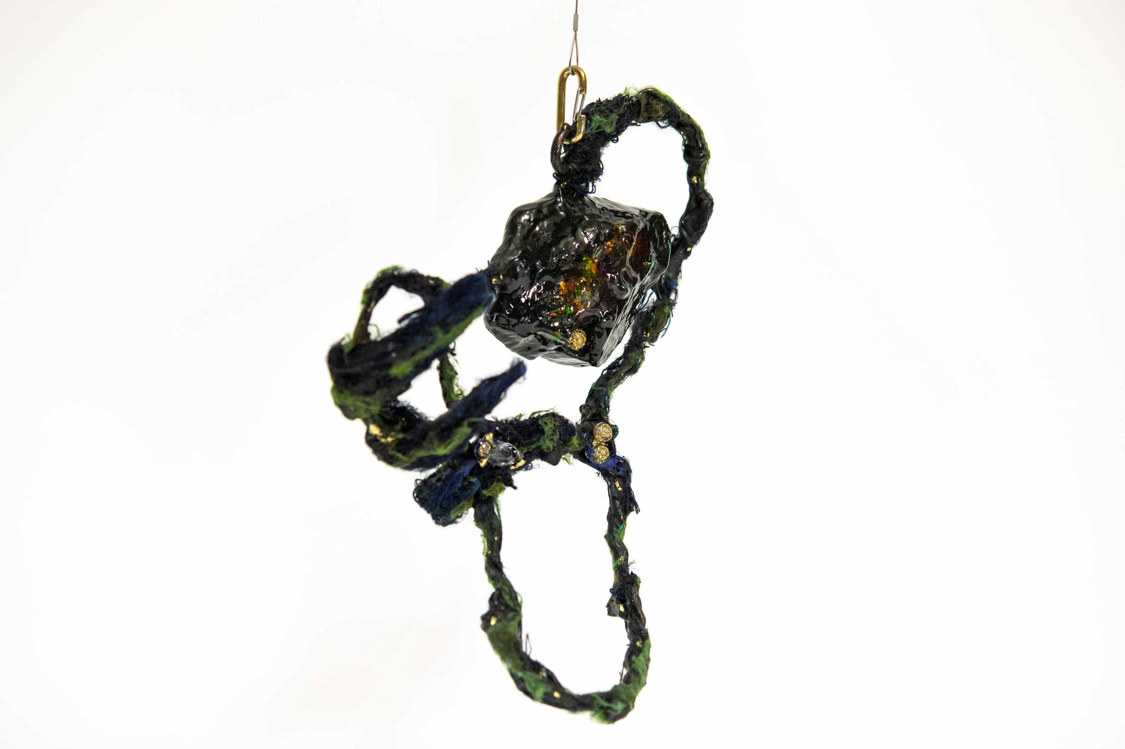 Untied [#SS21SC004] 2021, Oil, Glue, Yarn, Polyethylene Net, and Resin on Stone Powder Clay, 10 x 13.4 x 7.5 in. / 25 x 34 x 19 cm