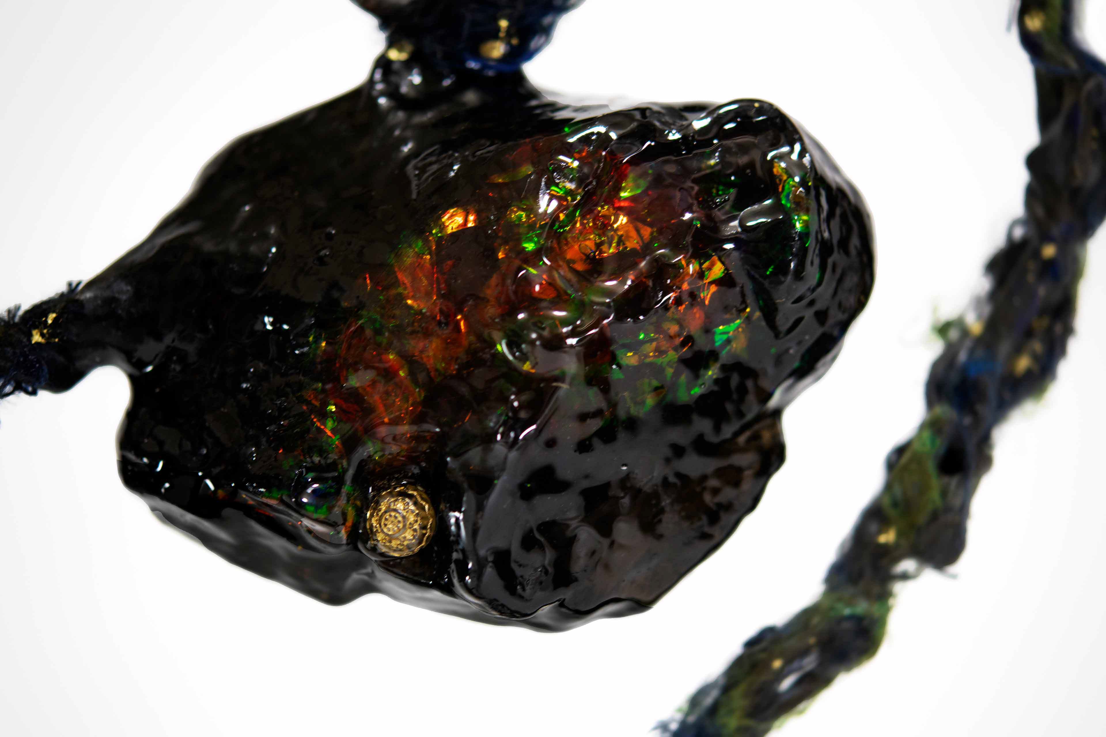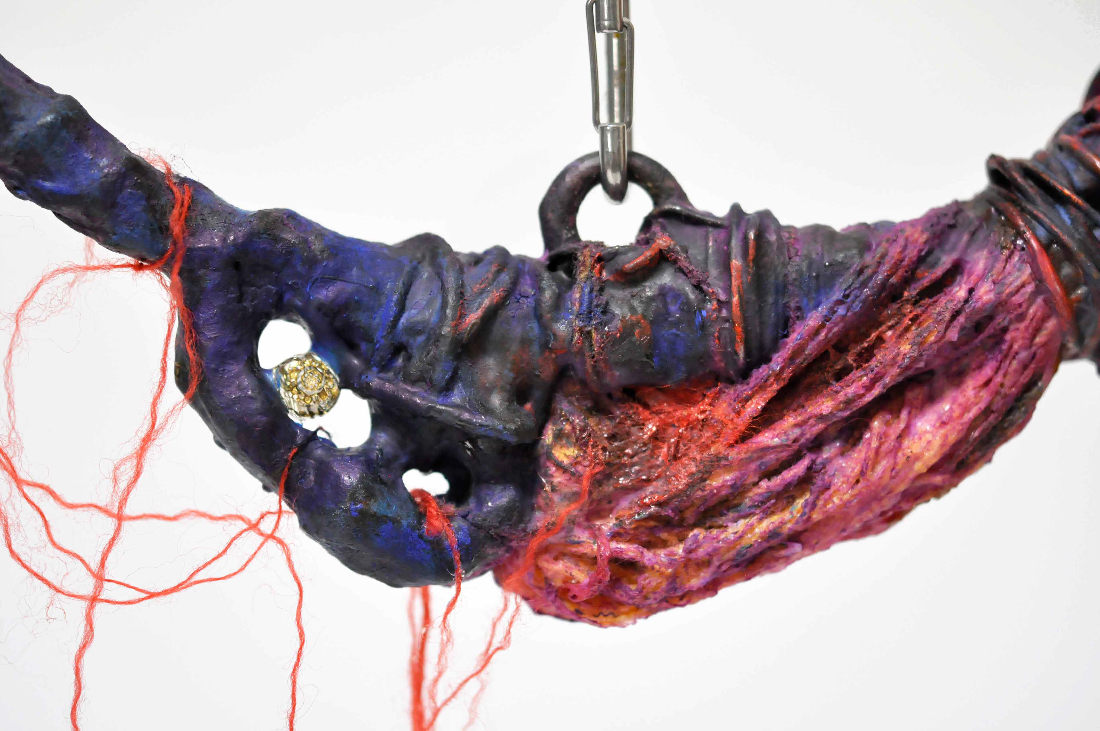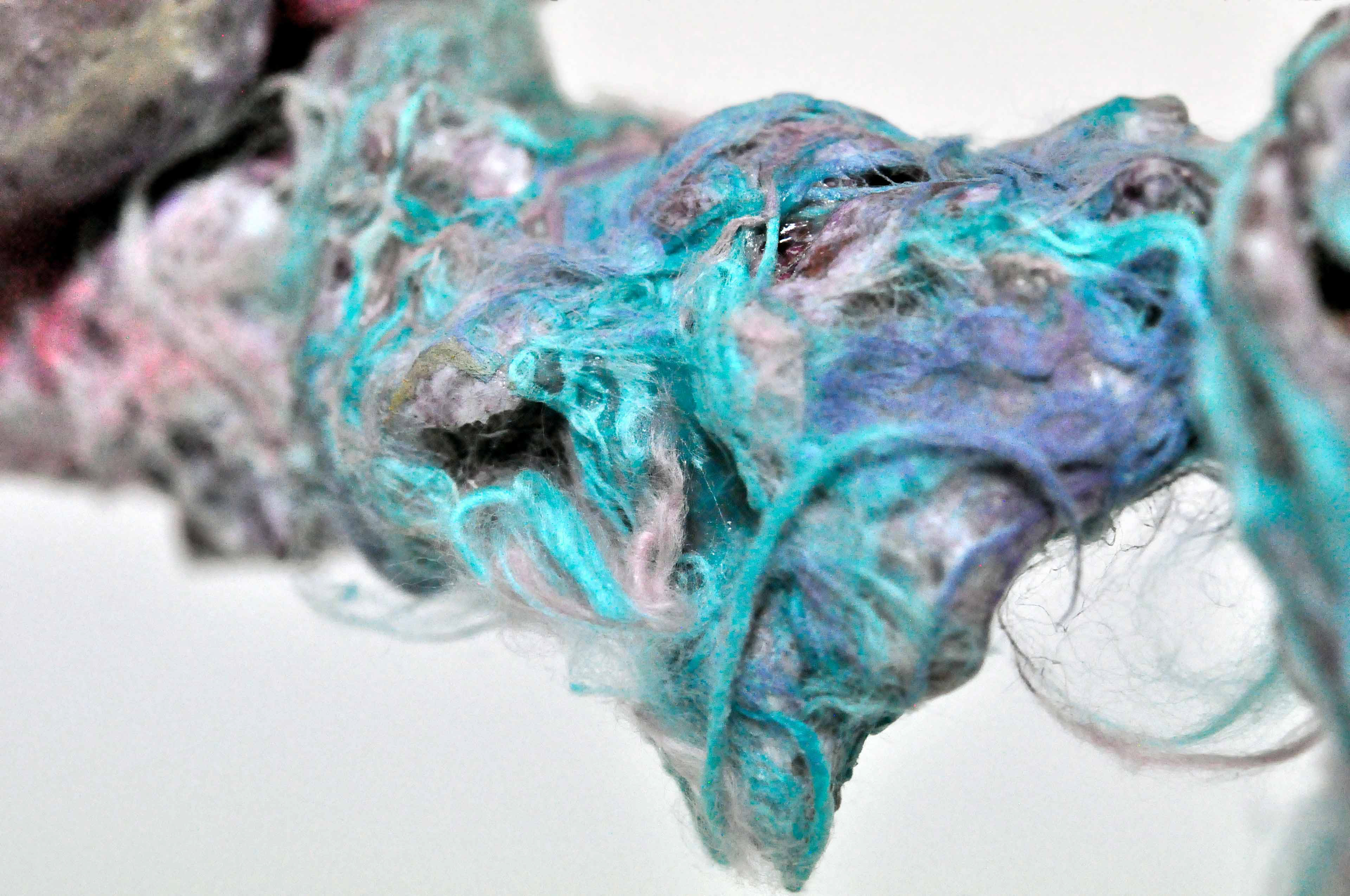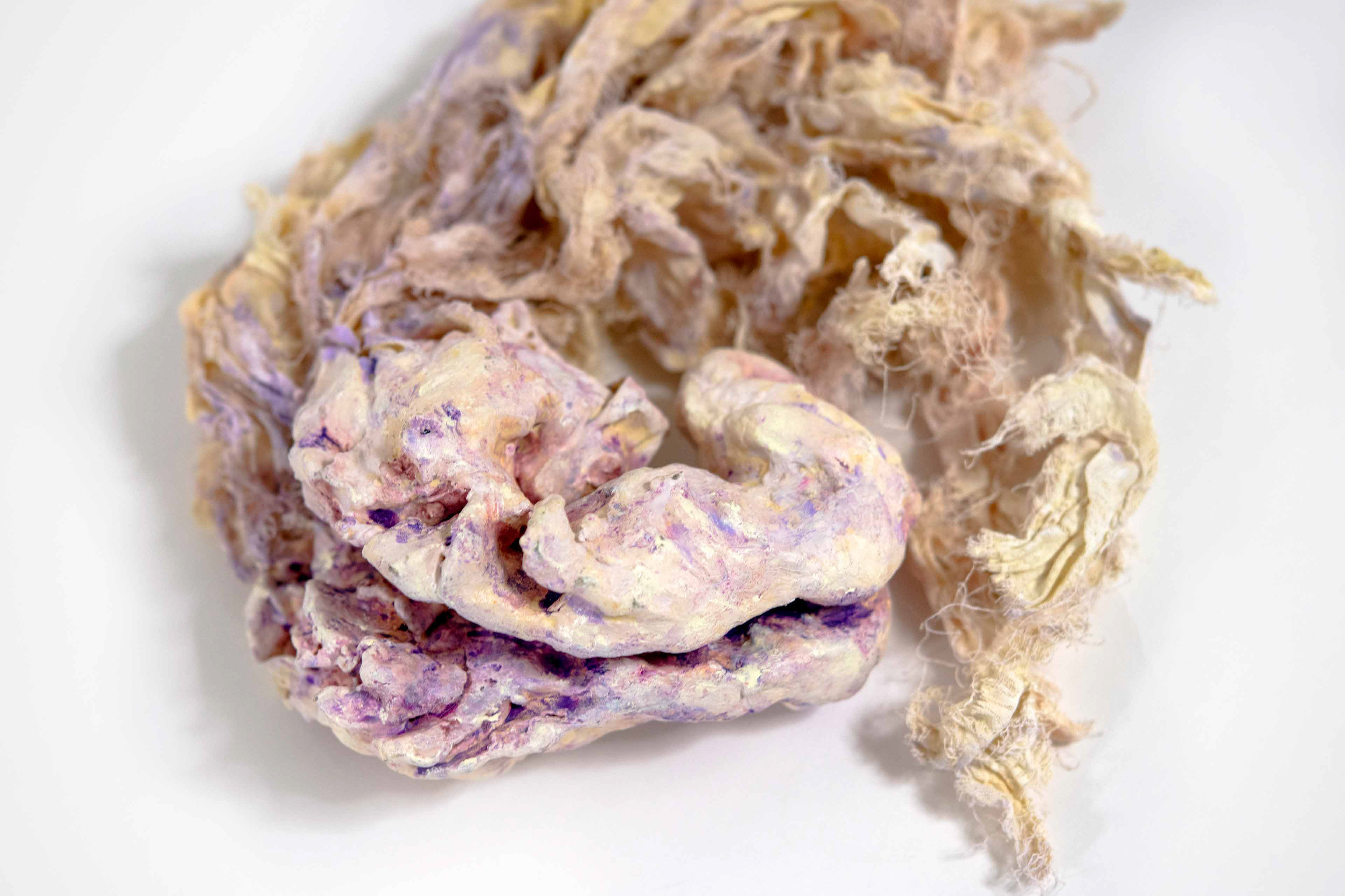 Untied [#SS21SC004] 2021, Oil, Glue, Yarn, Polyethylene Net, and Resin on Stone Powder Clay, 10 x 13.4 x 7.5 in. / 25 x 34 x 19 cm