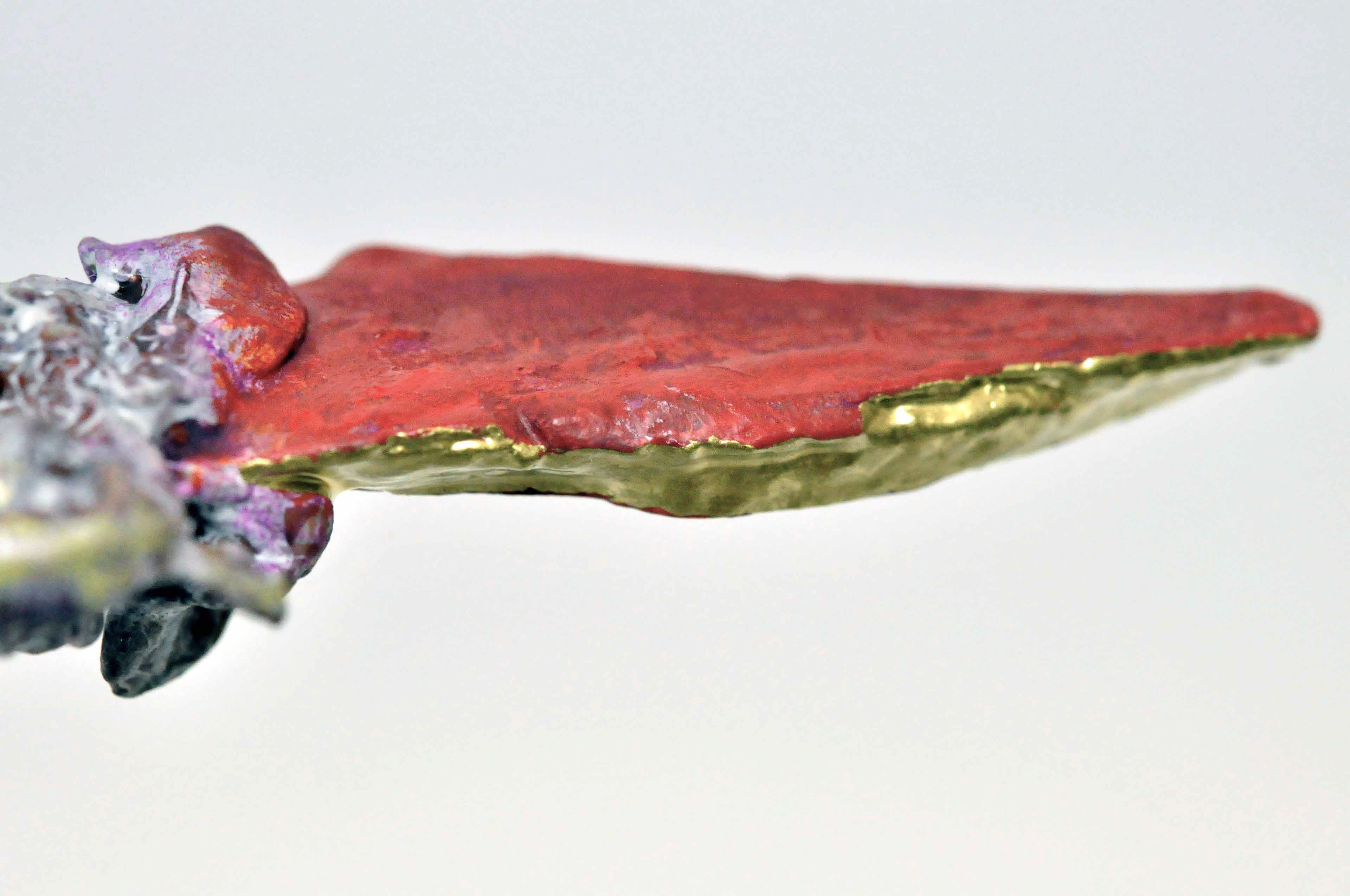 Bird [#SS21SC003] 2021, Oil, Glue, an Acrylic Bead, and Steel Wire on Stone Powder Clay, 11 x 14 x 4 in. / 28 x 35 x 10 cm