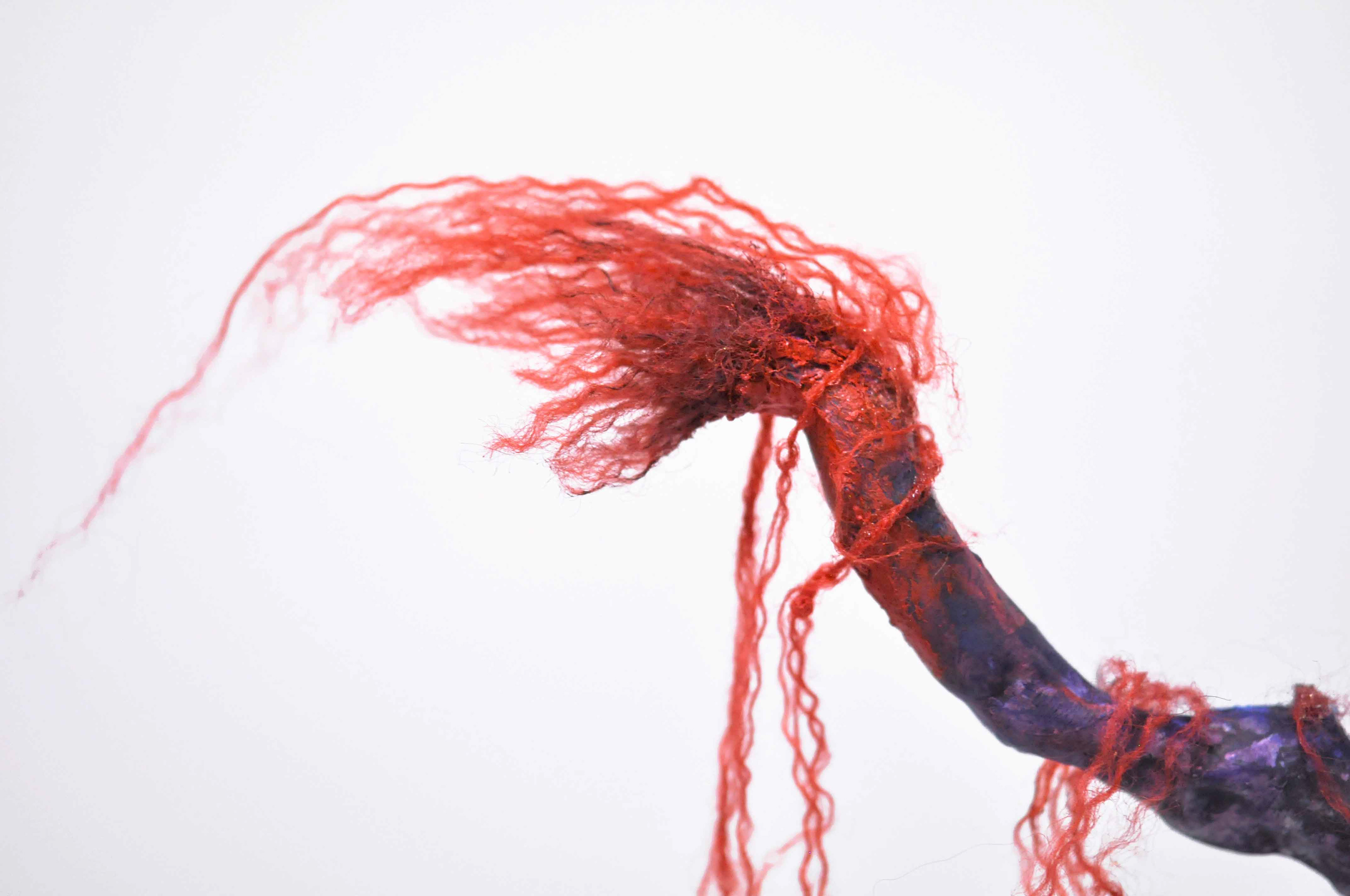 Bird [#SS21SC001] 2021, Oil, Yarn, Glue, an Acrylic Bead, Resin Clay, and Steel Wire on Stone Powder Clay, 7 x 16.5 x 2 in. / 18 x 42 x 4.5 cm