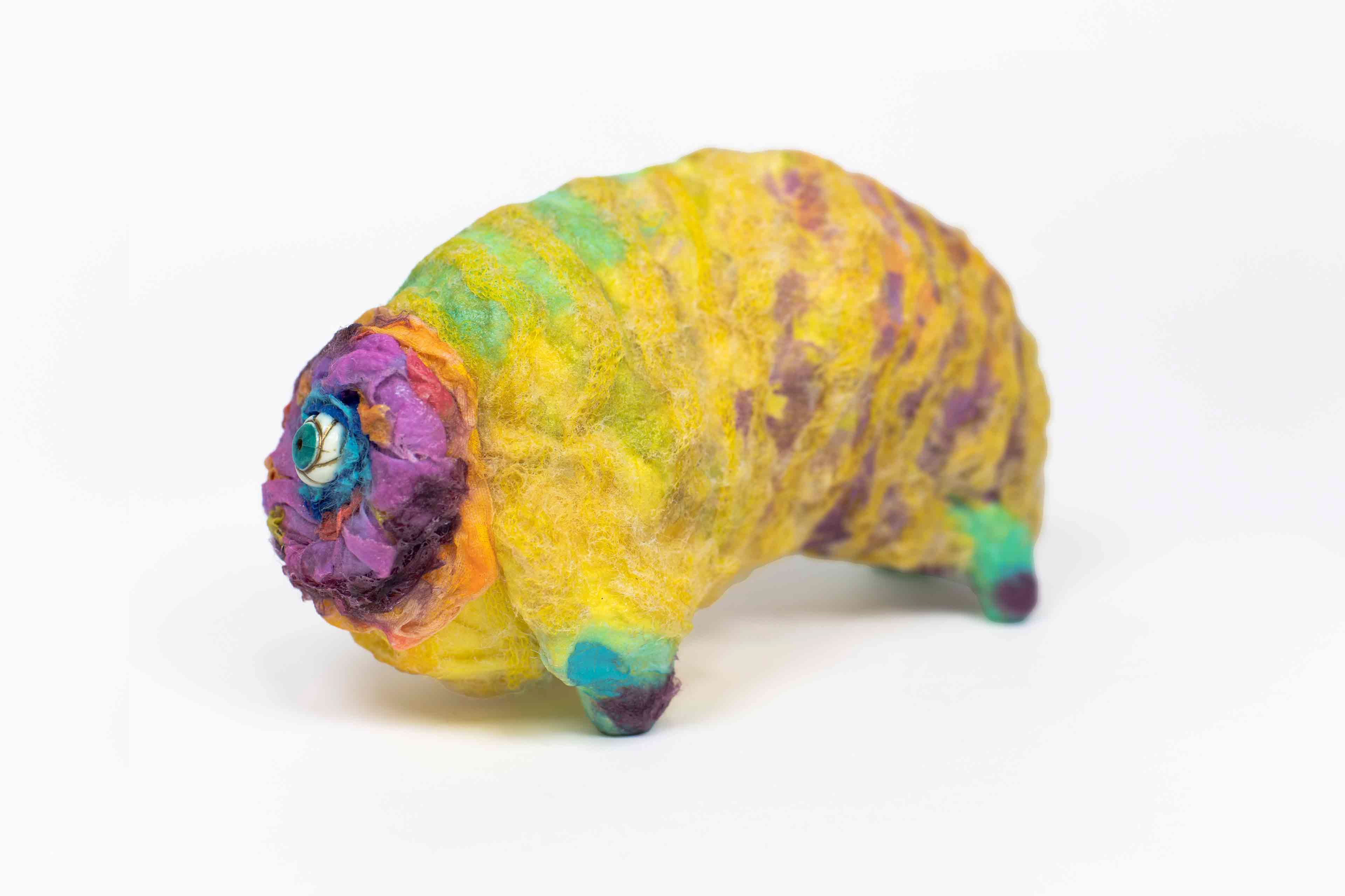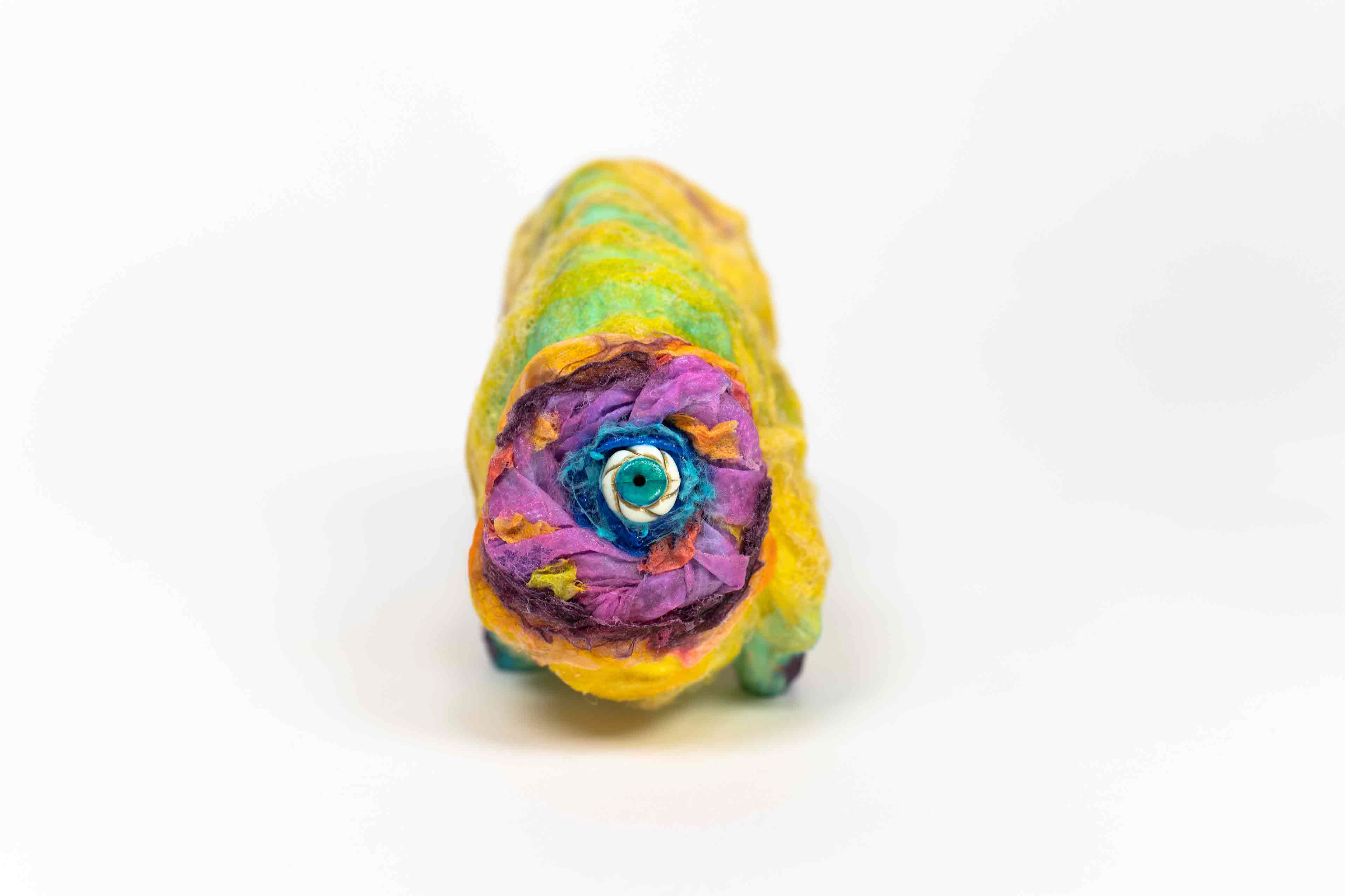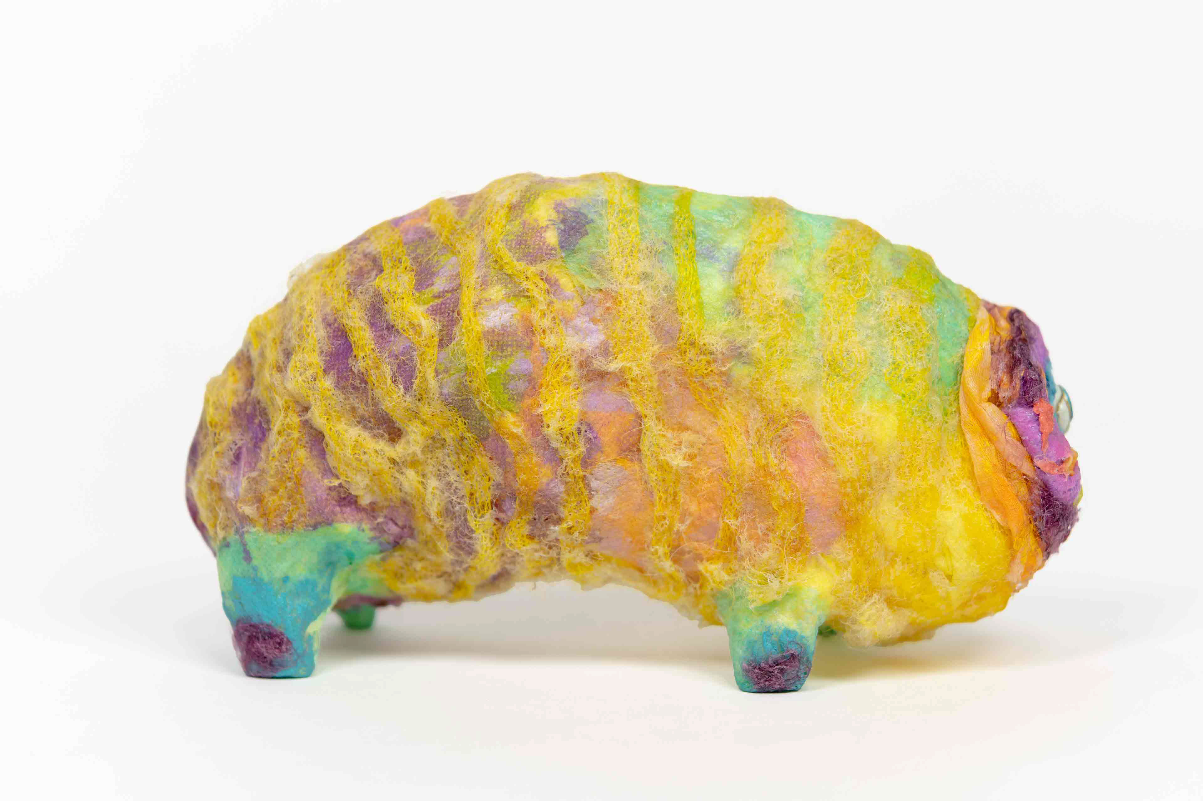 The Animal Grazing on Grass [#SS25SC002] 2025, Oil, Varnish, Yarn, Fabrics, Non-Woven Fabrics, and an Acrylic Bead on Stone Powder Clay, 5.1 x 9.05 x 3.5 in. / 13 x 23 x 9 cm