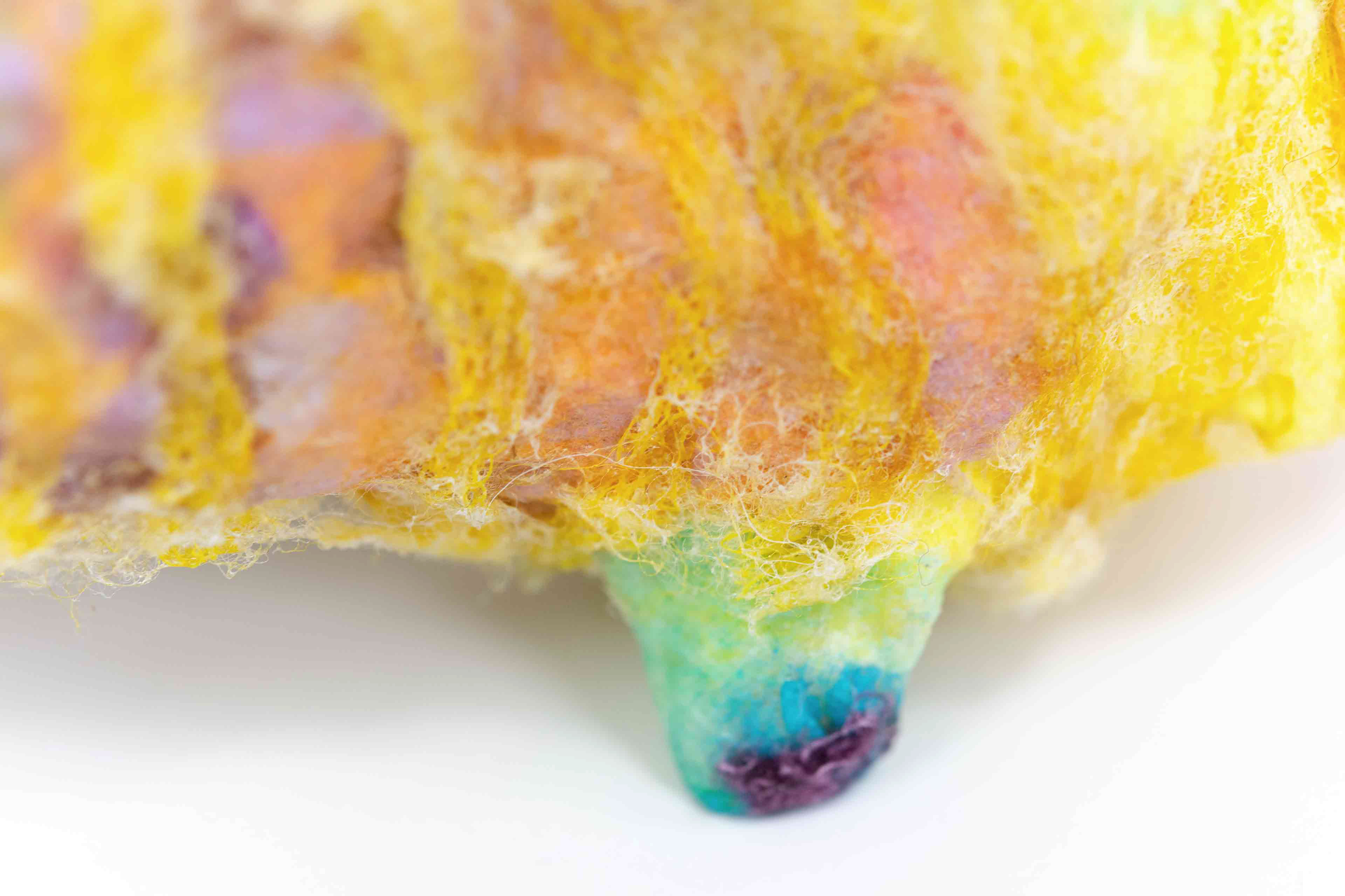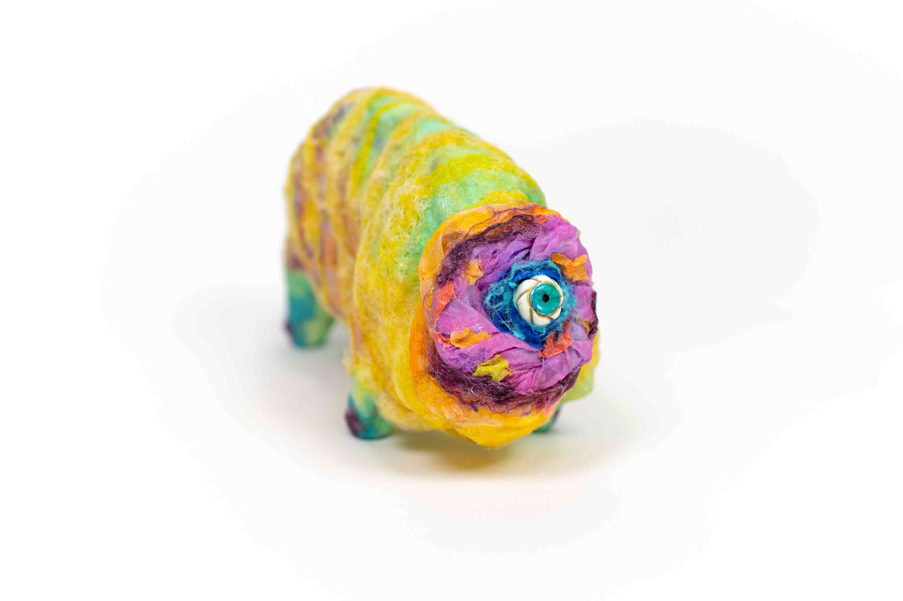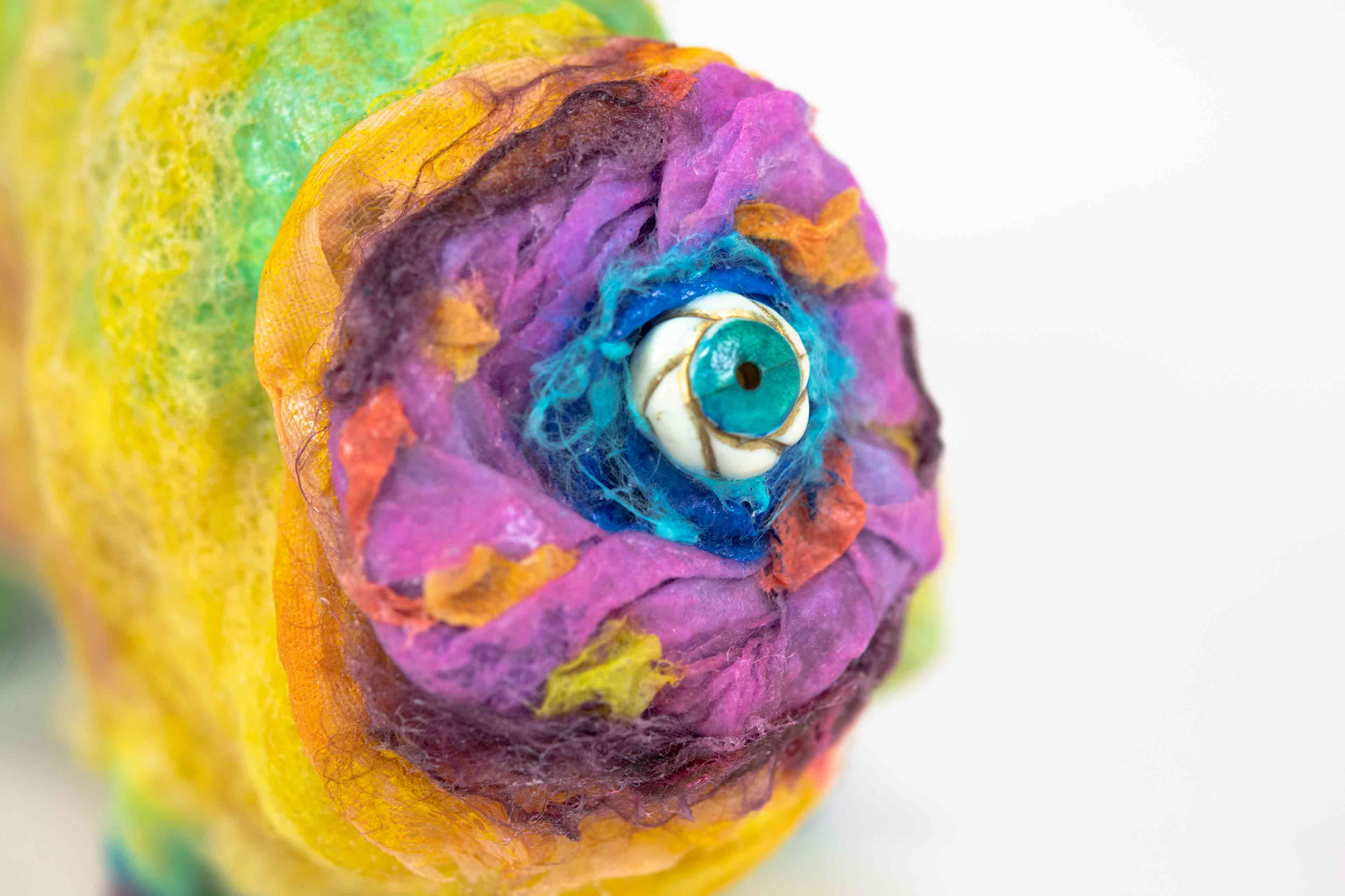 The Animal Grazing on Grass [#SS25SC002] 2025, Oil, Varnish, Yarn, Fabrics, Non-Woven Fabrics, and an Acrylic Bead on Stone Powder Clay, 5.1 x 9.05 x 3.5 in. / 13 x 23 x 9 cm